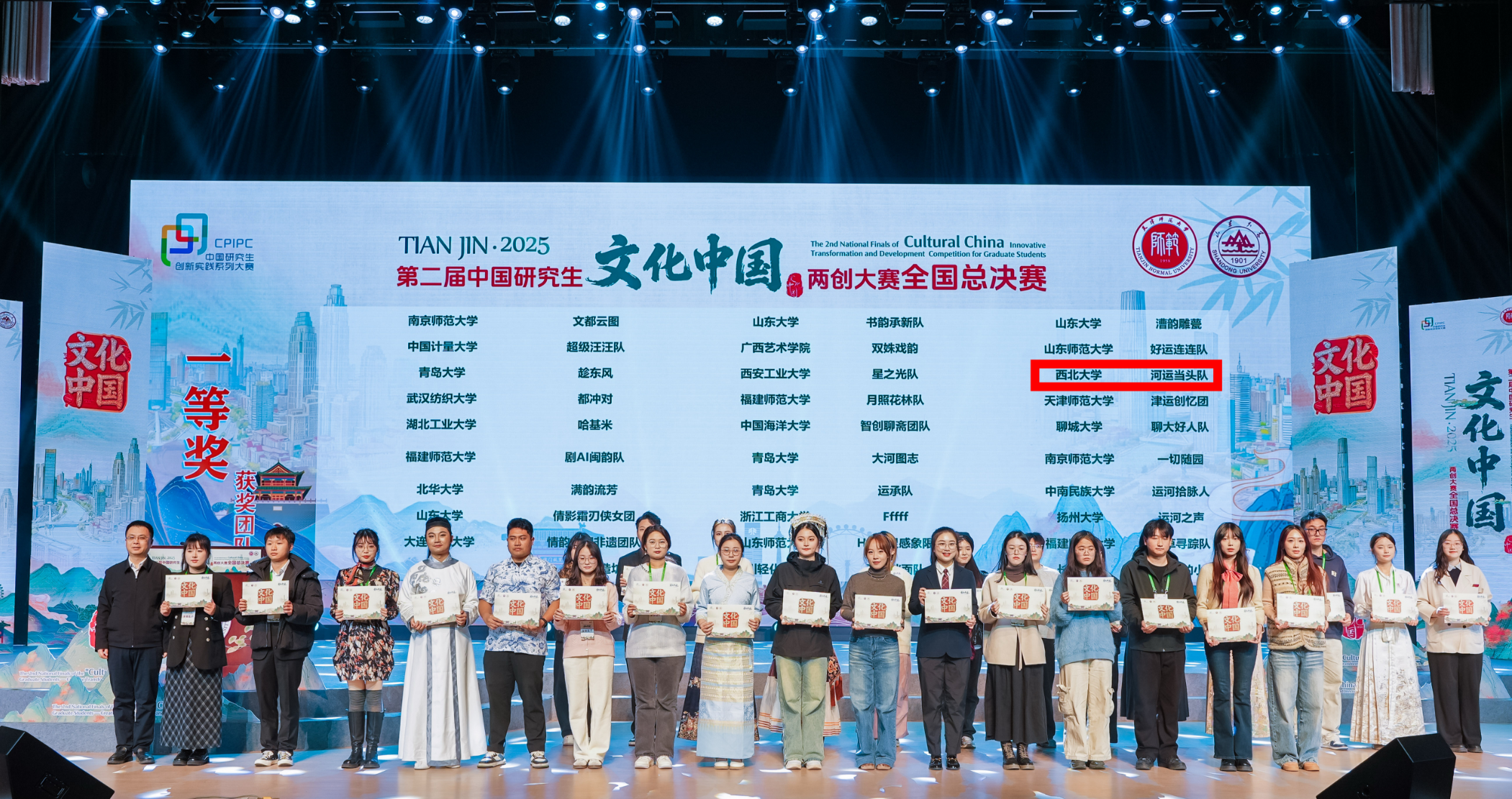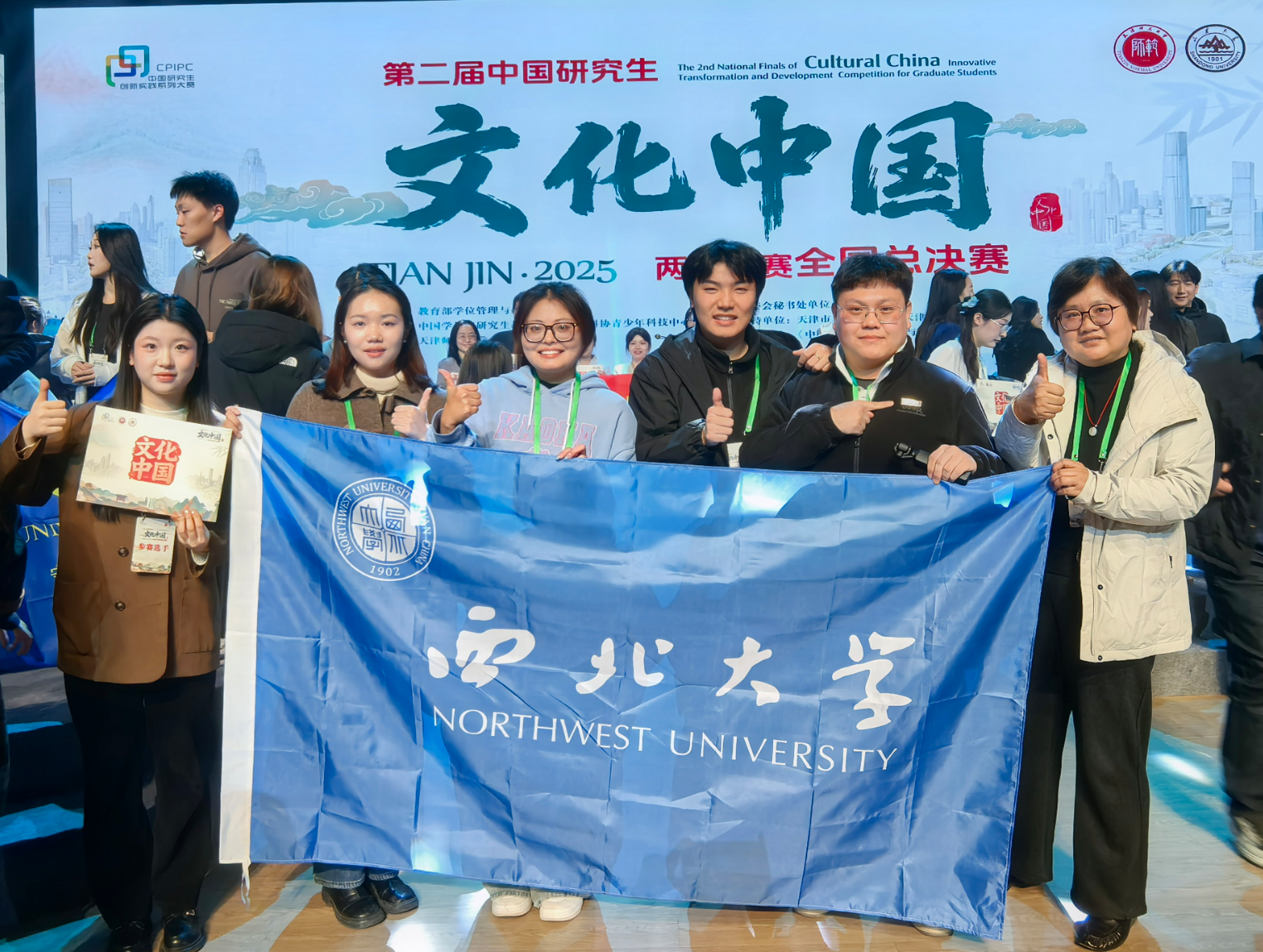 12月7日,第二届中国研究生“文化中国”两创大赛全国总决赛在天津师范大学圆满落幕。在研究生院(部)和文化遗产学院的精心组织指导下,由周剑虹副教授担任指导教师,文化遗产学院2025级研究生胡烨、李佳洁、班昊天、余飞扬、尹霁青组成的“乐投平台-河运当头队”,凭借出色表现脱颖而出,荣获全国总决赛一等奖,周剑虹获评优秀指导教师。