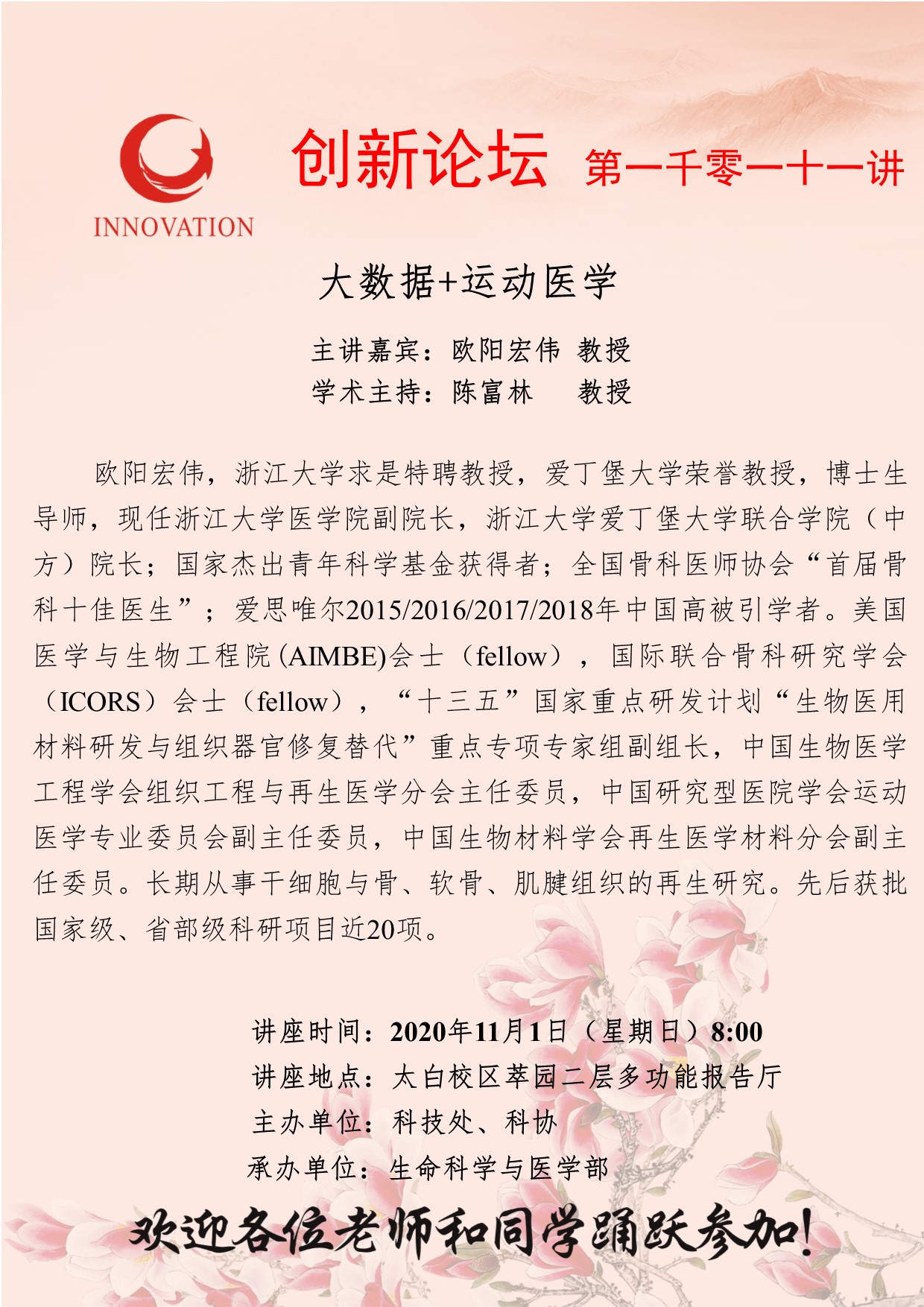 乐投平台创新论坛第一千零一十讲暨校庆118周年学术讲座:骨科植入性器械转化研究的思考