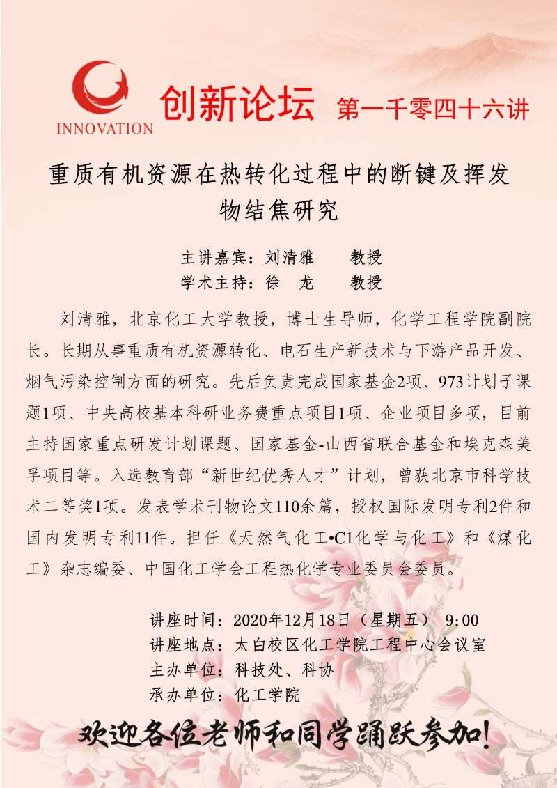 刘清雅 教授 乐投平台创新论坛第一千零四十六讲:重质有机资源在热转化过程中的断键及挥发物结焦研究 讲座时间 2020年12月18日(星期五) 9:00 讲座地点 太白校区化工学院工程中心会议室 讲座人介绍 刘清雅 教授 讲座内容