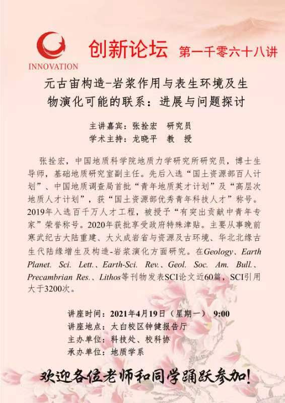 张拴宏 研究员 乐投平台创新论坛第一千零六十八讲:元古宙构造-岩浆作用与表生环境及生物演化可能的联系:进展与问题探讨 讲座时间 2021年4月19日(星期一) 9:00 讲座地点 太白校区钟健报告厅 讲座人介绍 张拴宏 研究员 讲座内容