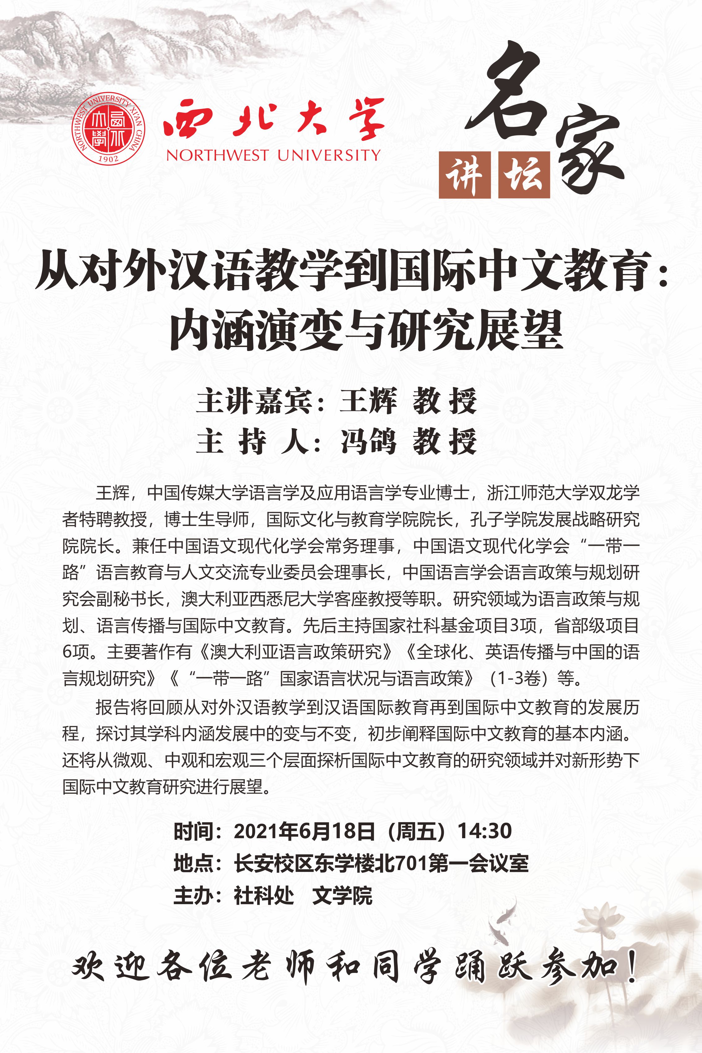 名家讲坛:从对外汉语教学到国际中文教育:内涵演变与研究展望