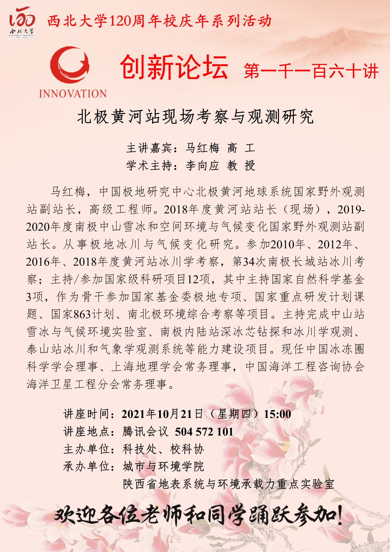 马红梅 高工 乐投平台创新论坛第一千一百六十讲暨120周年校庆年系列活动:北极黄河站现场考察与观测研究 讲座时间 2021年10月21日(星期四)15:00 讲座地点 腾讯会议 504 572 101 讲座人介绍 马红梅 高工 讲座内容