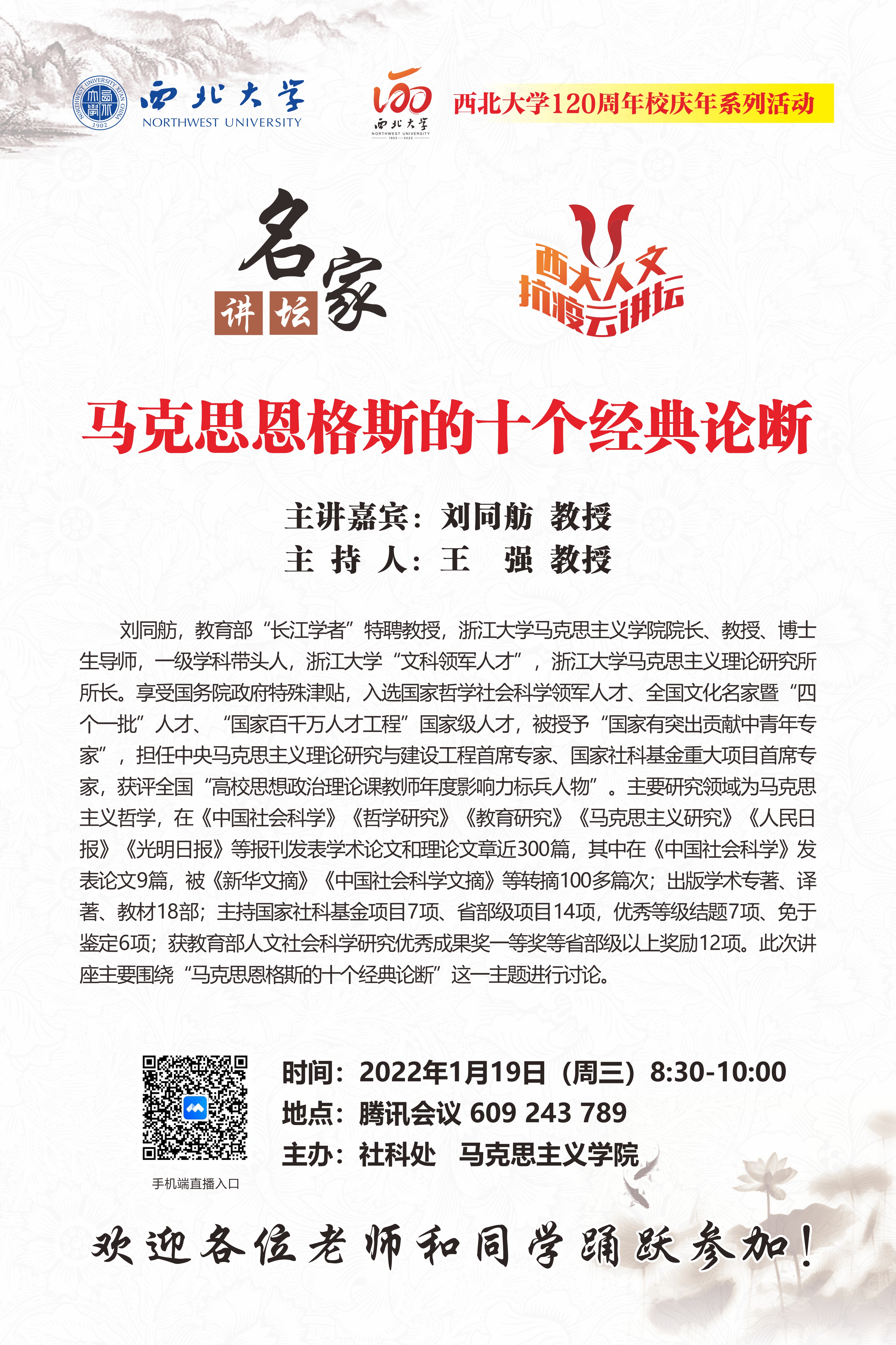 刘同舫 教授 乐投平台西大人文抗疫云讲坛:马克思恩格斯的十个经典论断 讲座时间 2022年1月19日(周三)8:30-10:00 讲座地点 腾讯会议:609243789 讲座人介绍 刘同舫 教授 讲座内容
