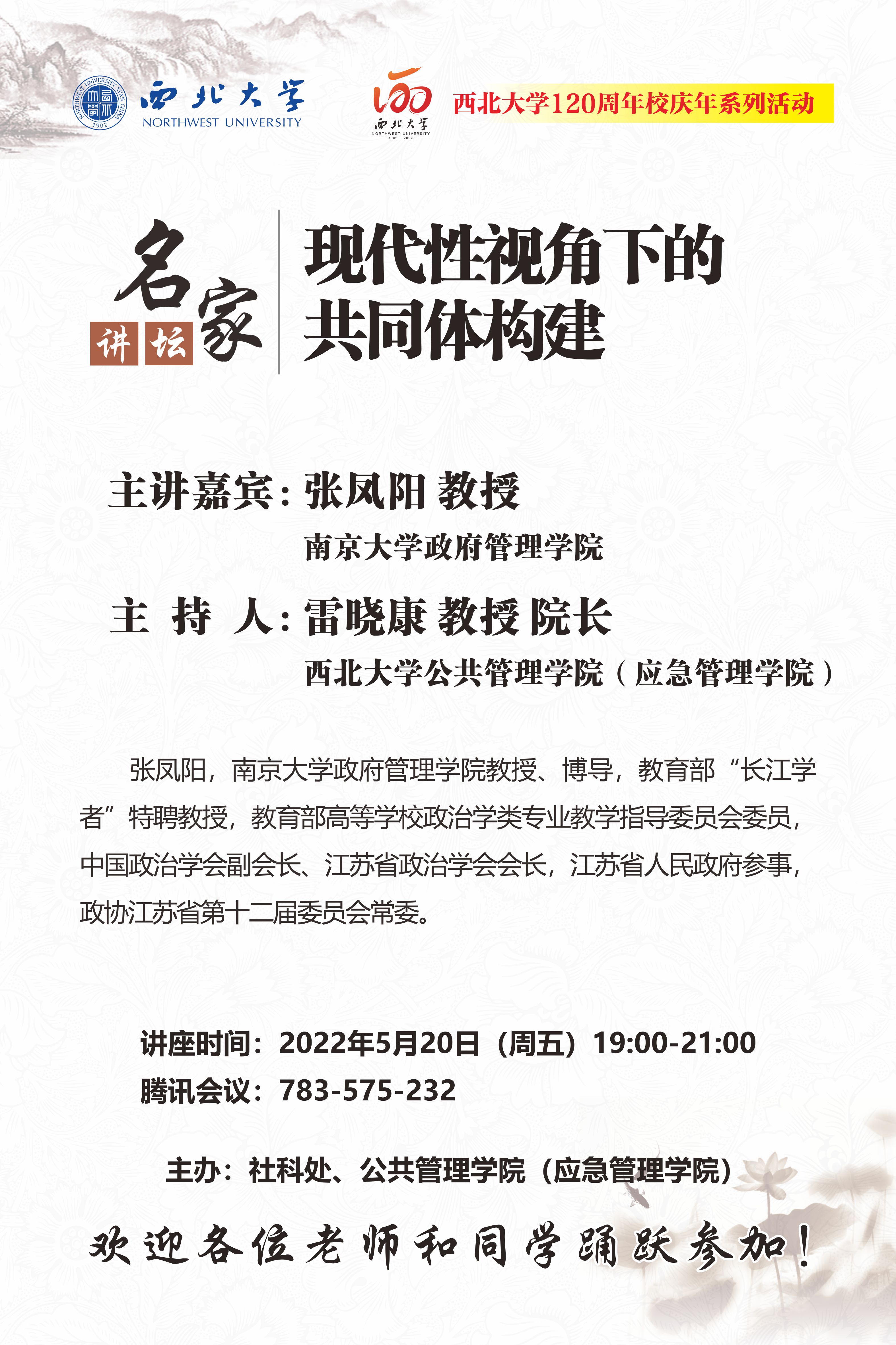张凤阳 教授 乐投平台120周年校庆年系列活动:现代性视角下的共同体构建 讲座时间 2022年5月20日(周五)19:00-21:00 讲座地点 腾讯会议:783575232 讲座人介绍 张凤阳 教授 讲座内容