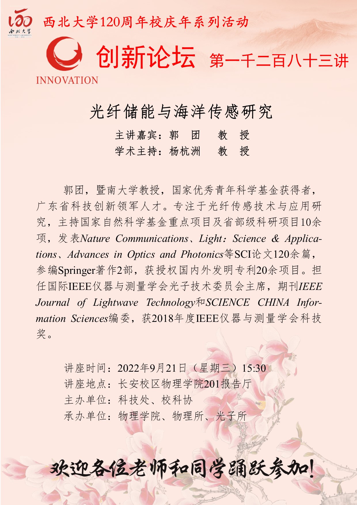 郭团 教授 乐投平台创新论坛第一千二百八十三讲暨120周年校庆年系列活动::光纤储能与海洋传感研究 讲座时间 2022年9月21日(星期三) 15:30 讲座地点 物理学院201报告厅 讲座人介绍 郭团 教授 讲座内容
