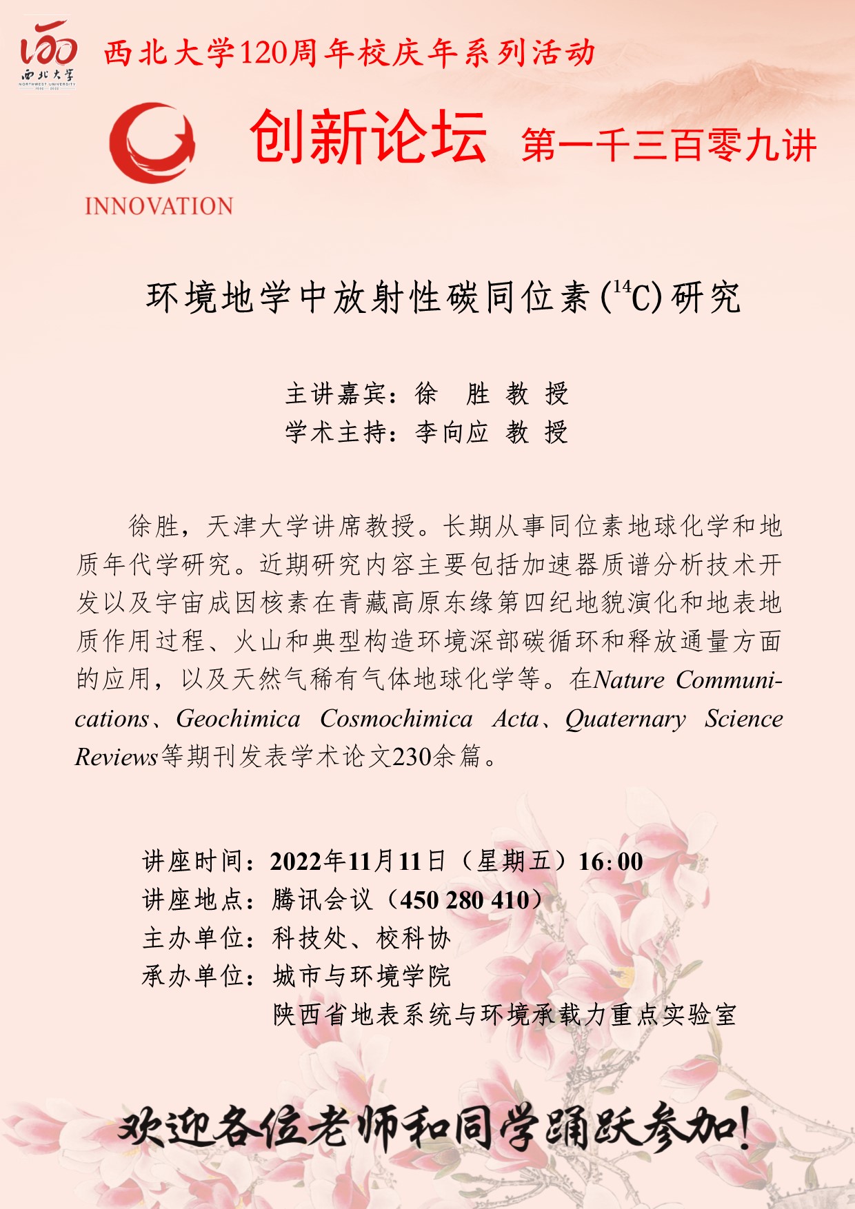 徐胜 教授 乐投平台创新论坛第一千三百零九讲暨120周年校庆年系列活动: 环境地学中放射性碳同位素(14C)研究 讲座时间 2022年11月11日(星期五)16:00 讲座地点 腾讯会议(450 280 410) 讲座人介绍 徐胜 教授 讲座内容