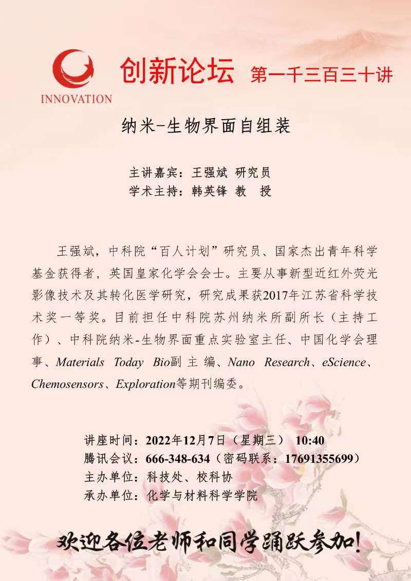 王强斌 研究员 乐投平台创新论坛第一千三百三十讲:纳米-生物界面自组装 讲座时间 2022年12月7日(星期三) 10:40 讲座地点 腾讯会议:666-348-634 讲座人介绍 王强斌 研究员 讲座内容