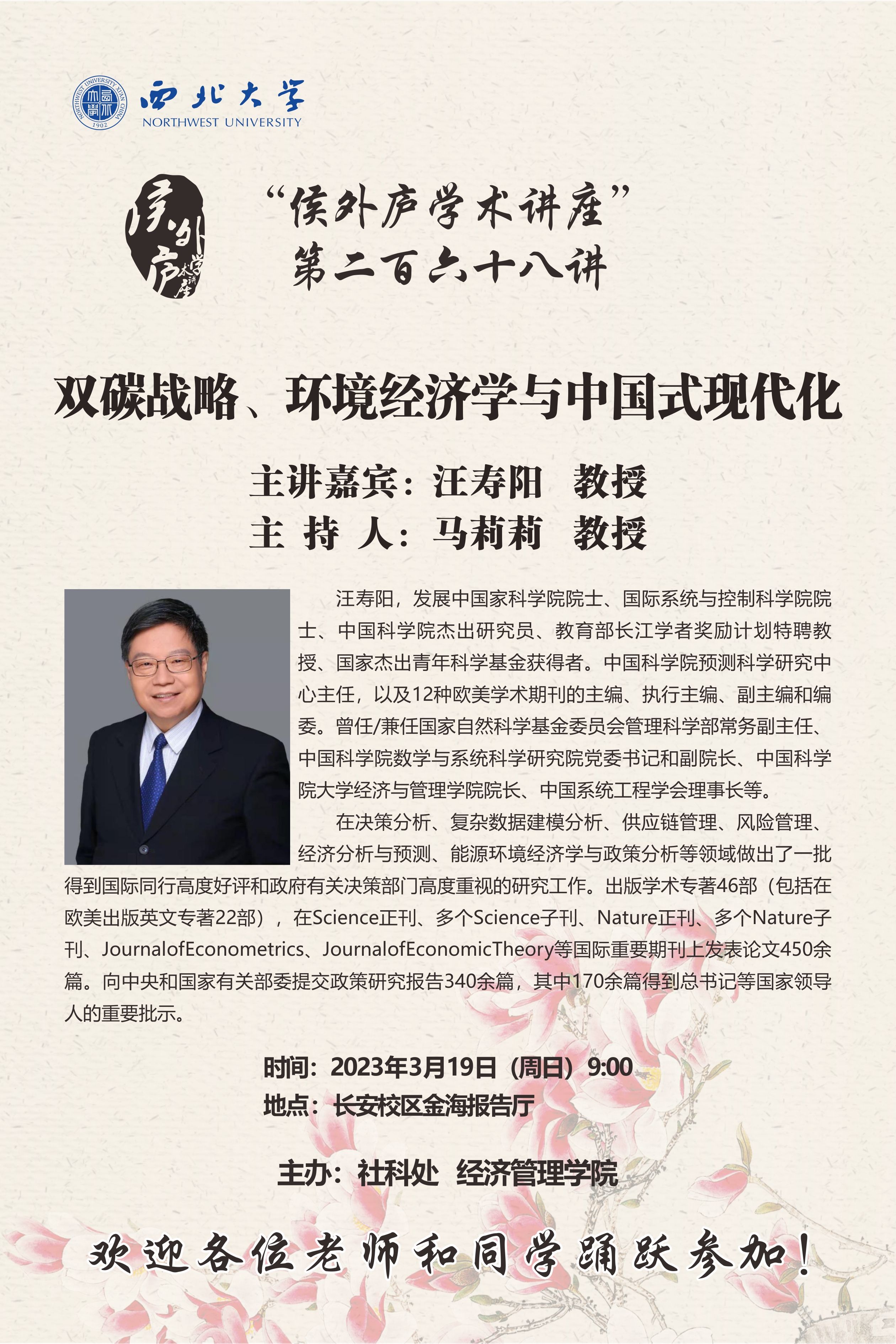 侯外庐学术讲座第二百六十八讲:双碳战略、环境经济学与中国式现代化