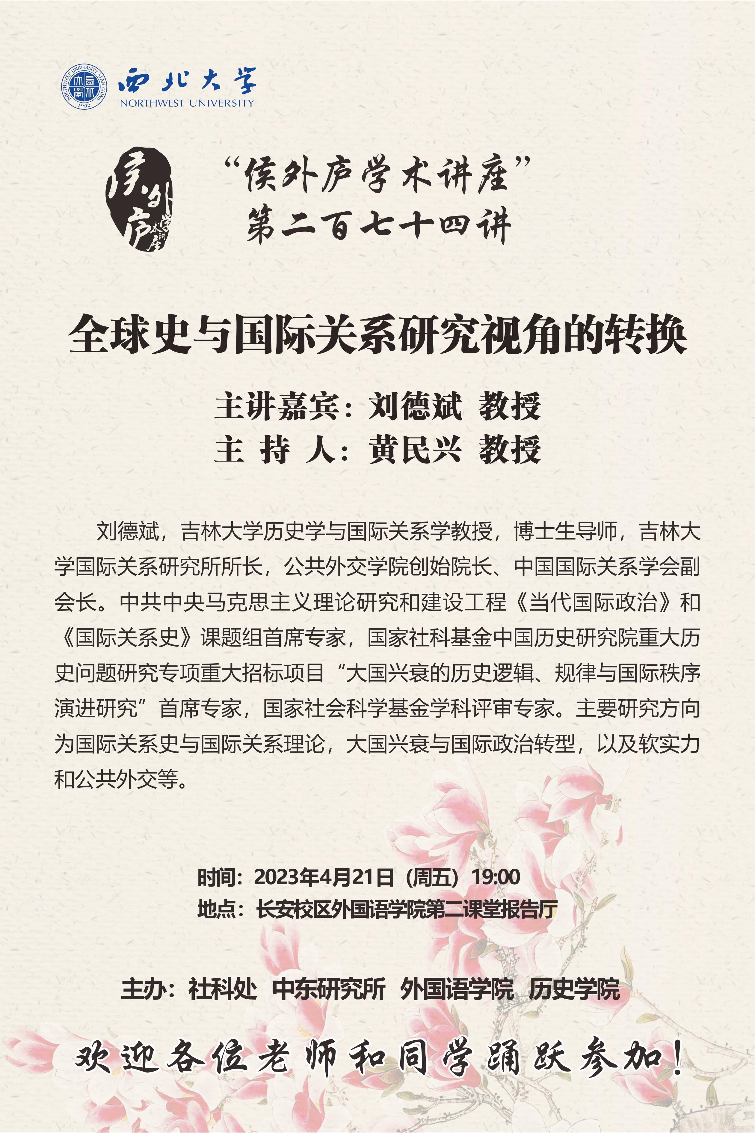 侯外庐学术讲座第二百七十四讲:全球史与国际关系研究视角的转换