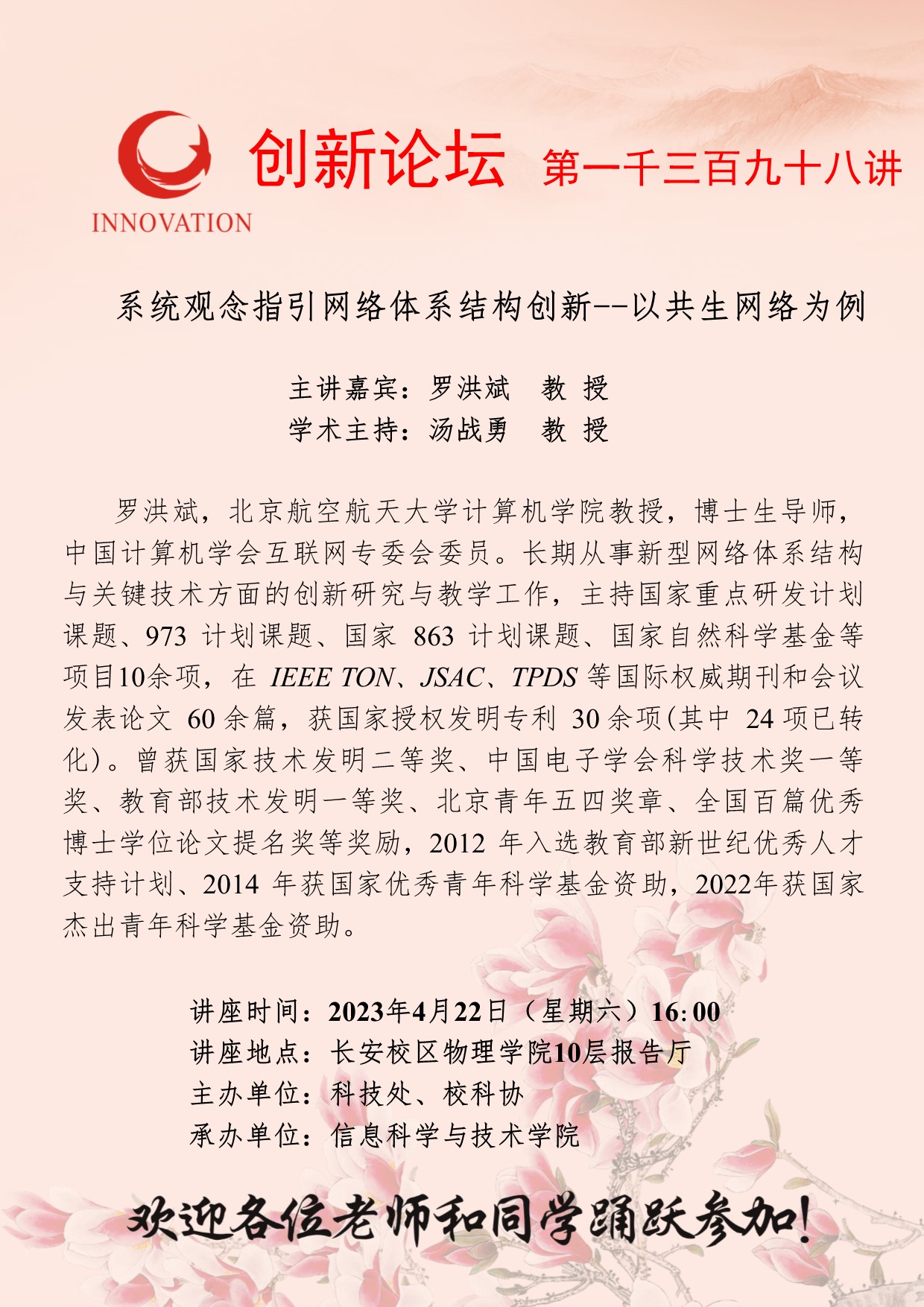 罗洪斌 教 授 乐投平台创新论坛第一千三百九十八讲:系统观念指引网络体系结构创新--以共生网络为例 讲座时间 2023年4月22日(星期六)16:00 讲座地点 长安校区物理学院10层报告厅 讲座人介绍 罗洪斌 教 授 讲座内容