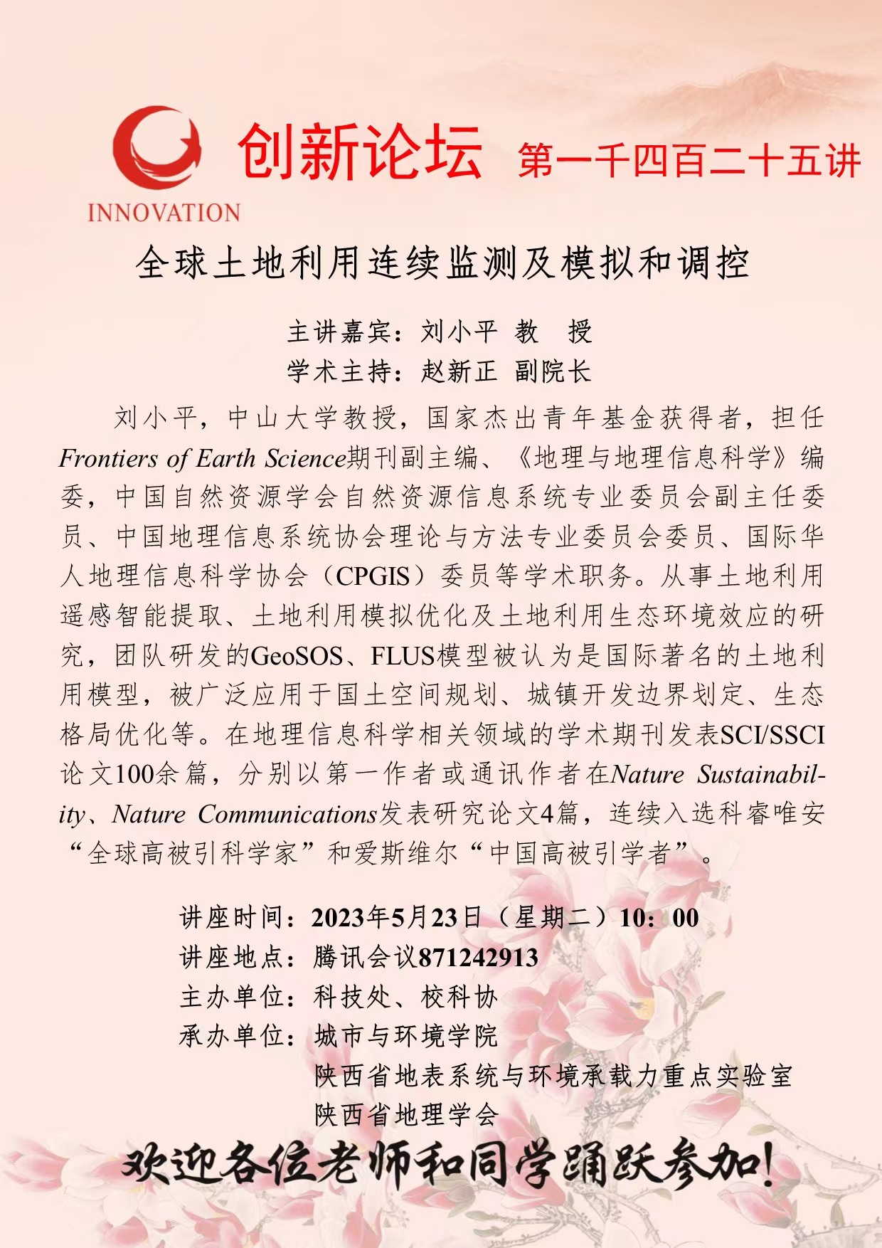 刘小平 教授 乐投平台创新论坛第一千四百二十五讲:全球土地利用连续监测及模拟和调控优化 讲座时间 2023年5月23日(星期二)10:00 讲座地点 腾讯会议871242913 讲座人介绍 刘小平 教授 讲座内容