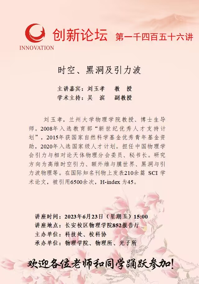 乐投平台创新论坛第一千四百五十六讲: 时空、黑洞及引力波