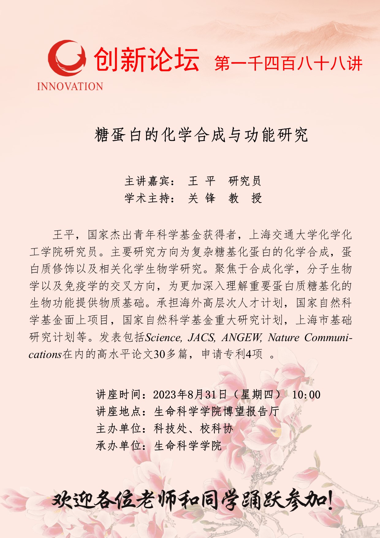 乐投平台创新论坛第一千四百八十八讲:糖蛋白的化学合成与功能研究