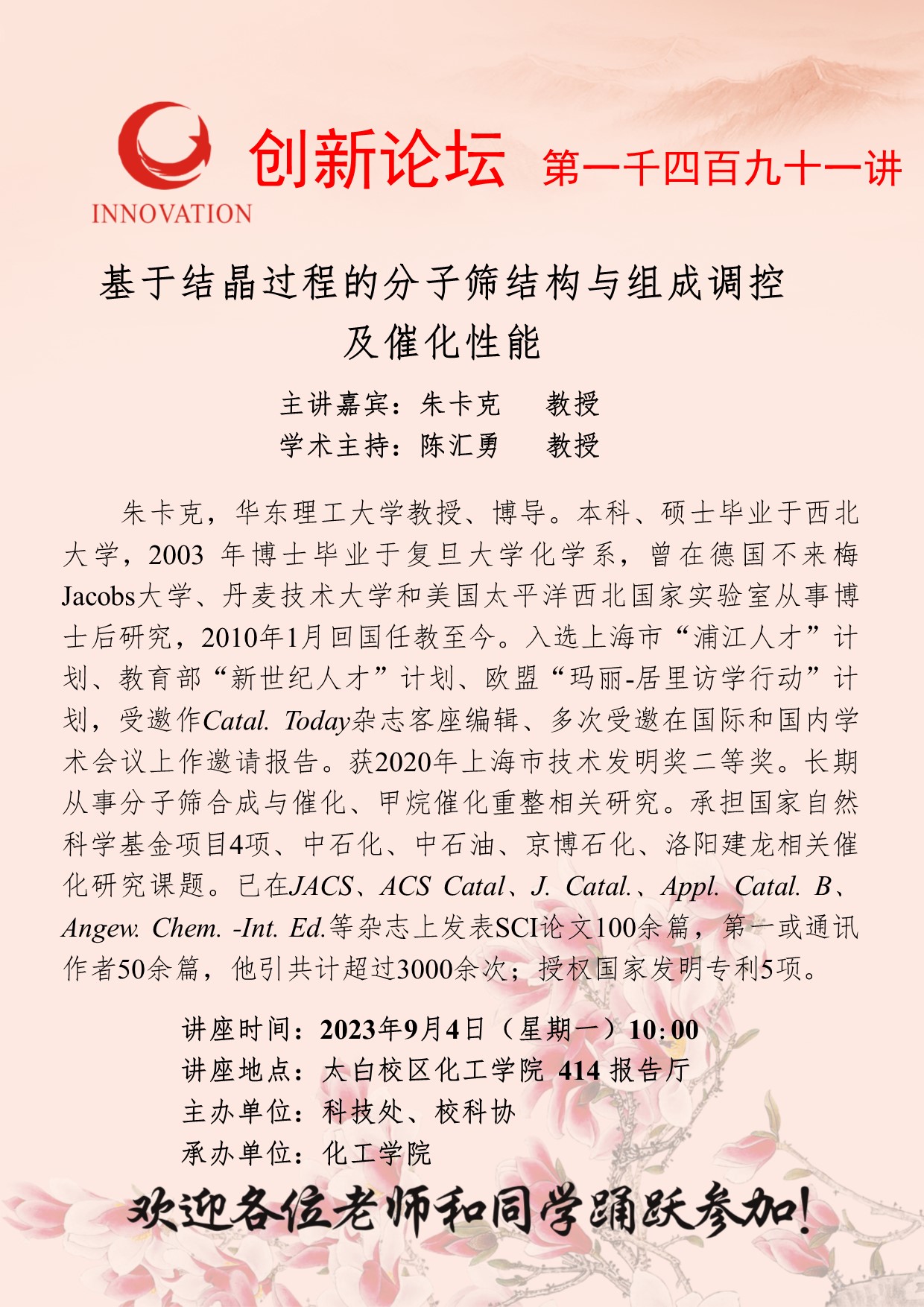 朱卡克 教授 乐投平台创新论坛第一千四百九十一讲:基于结晶过程的分子筛结构与组成调控及催化性能 讲座时间 2023年9月4日(星期一)10:00 讲座地点 太白校区化工学院414报告厅 讲座人介绍 朱卡克 教授 讲座内容