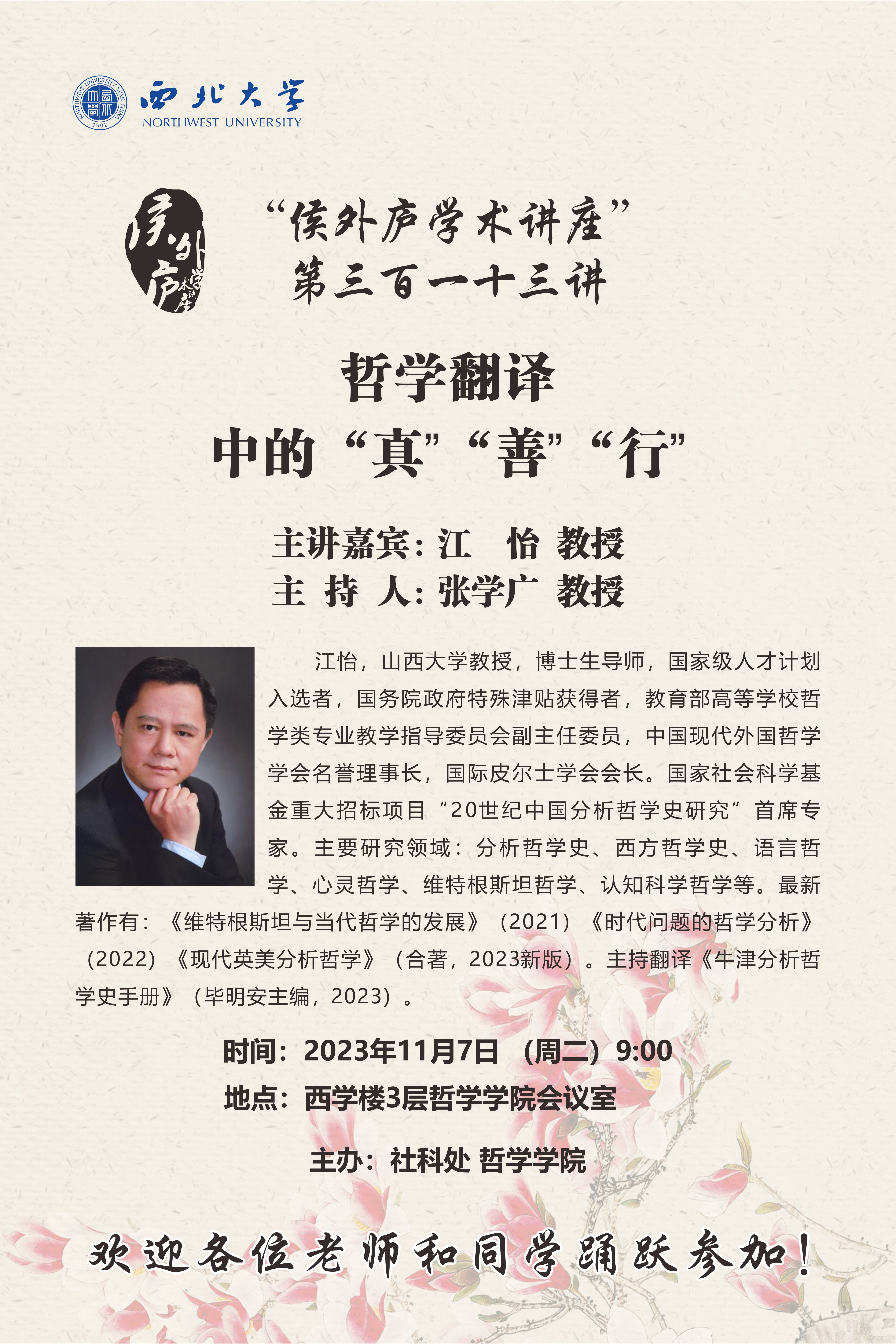 侯外庐学术讲座第三百一十三讲:哲学翻译中的“真”“善”“行”