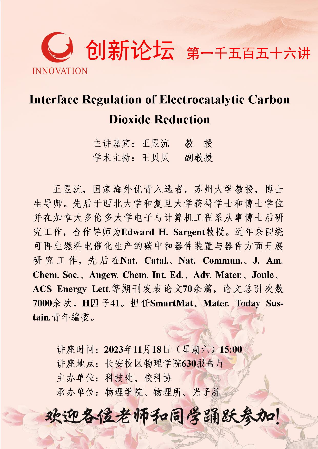 王昱沆 教授 乐投平台创新论坛第一千五百五十六讲:Interface Regulation of Electrocatalytic Carbon Dioxide Reduction 讲座时间 2023年11月18日(星期六)15:00 讲座地点 长安校区物理学院630报告厅 讲座人介绍 王昱沆 教授 讲座内容