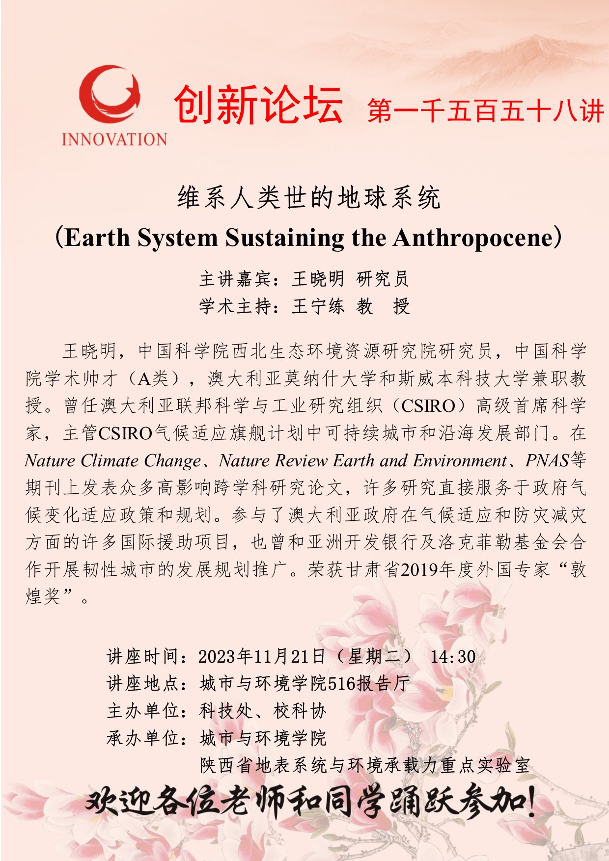 王晓明 研究员 乐投平台创新论坛第一千五百五十八讲:维系人类世的地球系统 讲座时间 2023年11月21日(星期二) 14:30 讲座地点 城市与环境学院516报告厅 讲座人介绍 王晓明 研究员 讲座内容