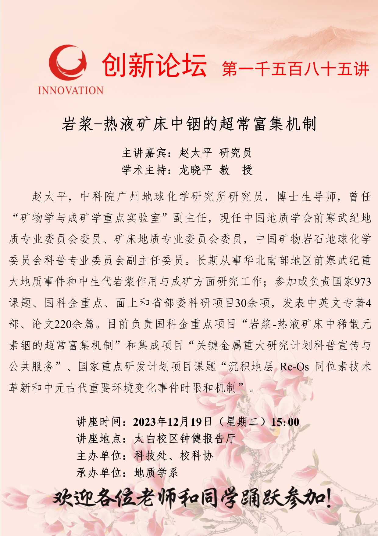 赵太平 研究员 乐投平台创新论坛第一千五百八十五讲:岩浆-热液矿床中铟的超常富集机制 讲座时间 2023年12月19日(星期二)15:00 讲座地点 太白校区钟健报告厅 讲座人介绍 赵太平 研究员 讲座内容