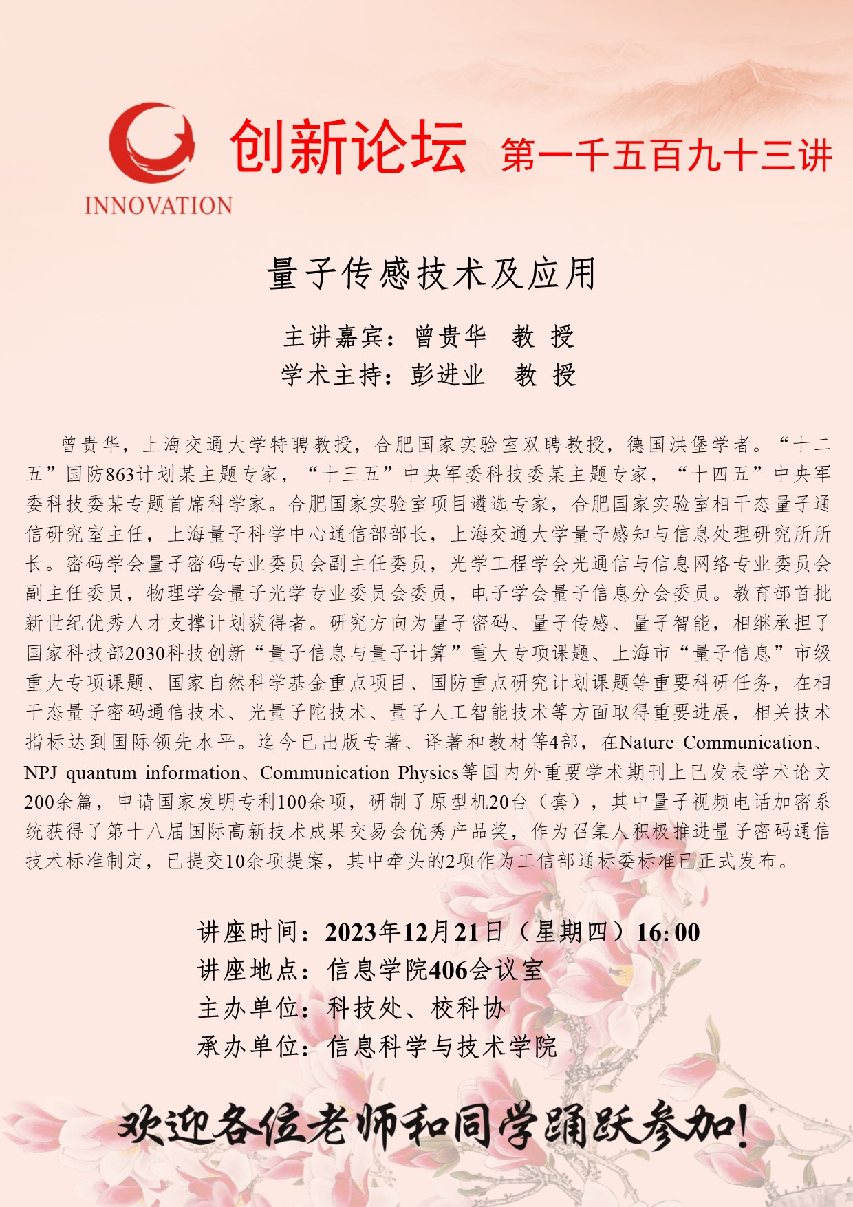 乐投平台创新论坛第一千五百九十三讲:量子传感技术及应用