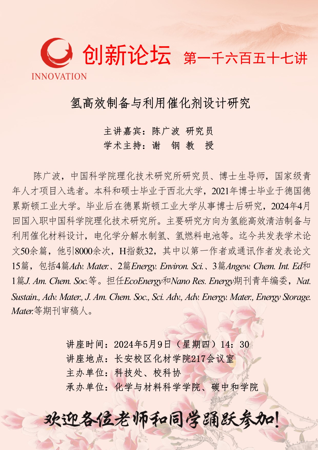 陈广波 研究员 乐投平台创新论坛第一千六百五十七讲:氢高效制备与利用催化剂设计研究 讲座时间 2024年5月9日(星期四)14:30 讲座地点 长安校区化材学院217会议室 讲座人介绍 陈广波 研究员 讲座内容