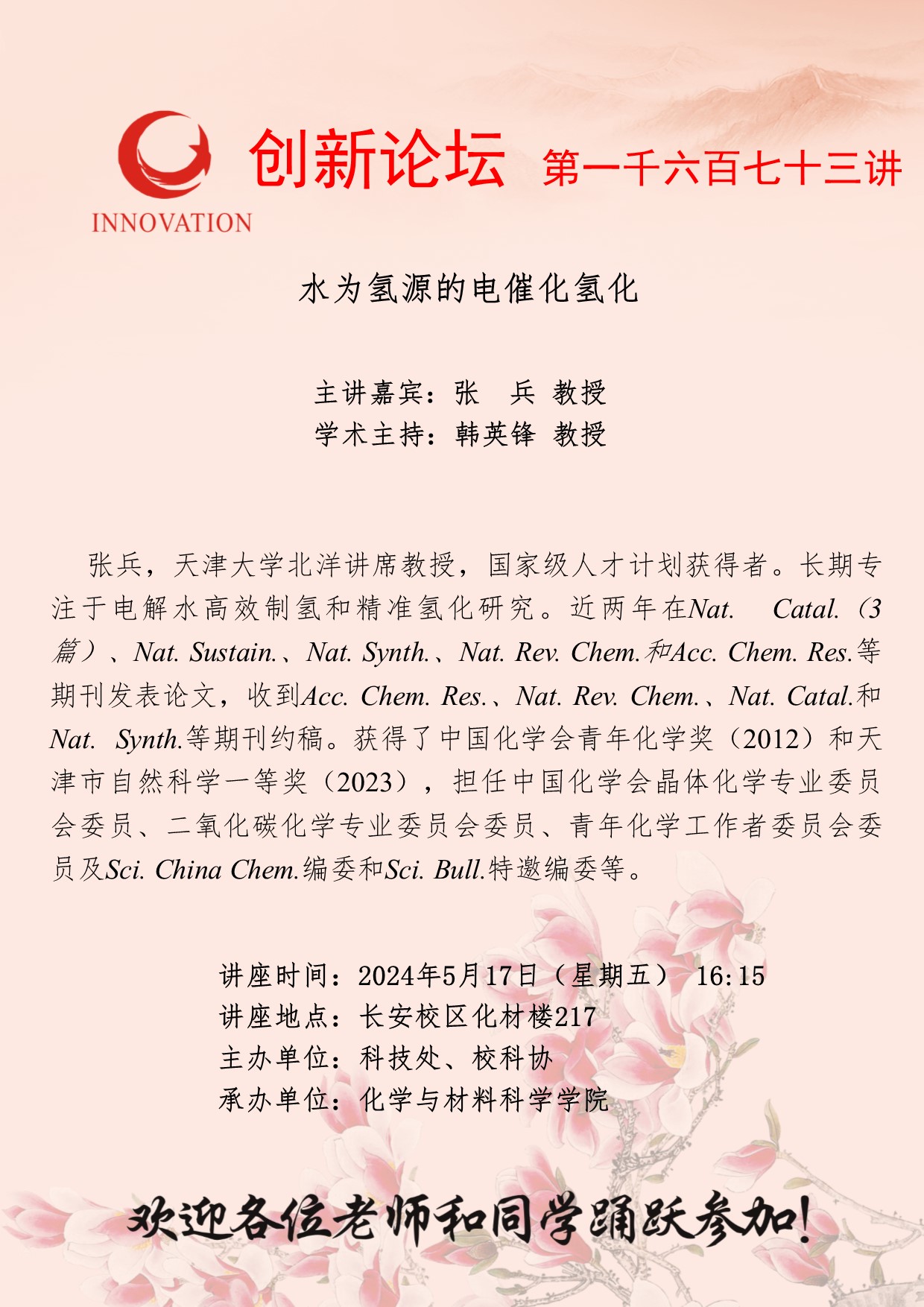 乐投平台创新论坛第一千六百七十三讲:水为氢源的电催化氢化