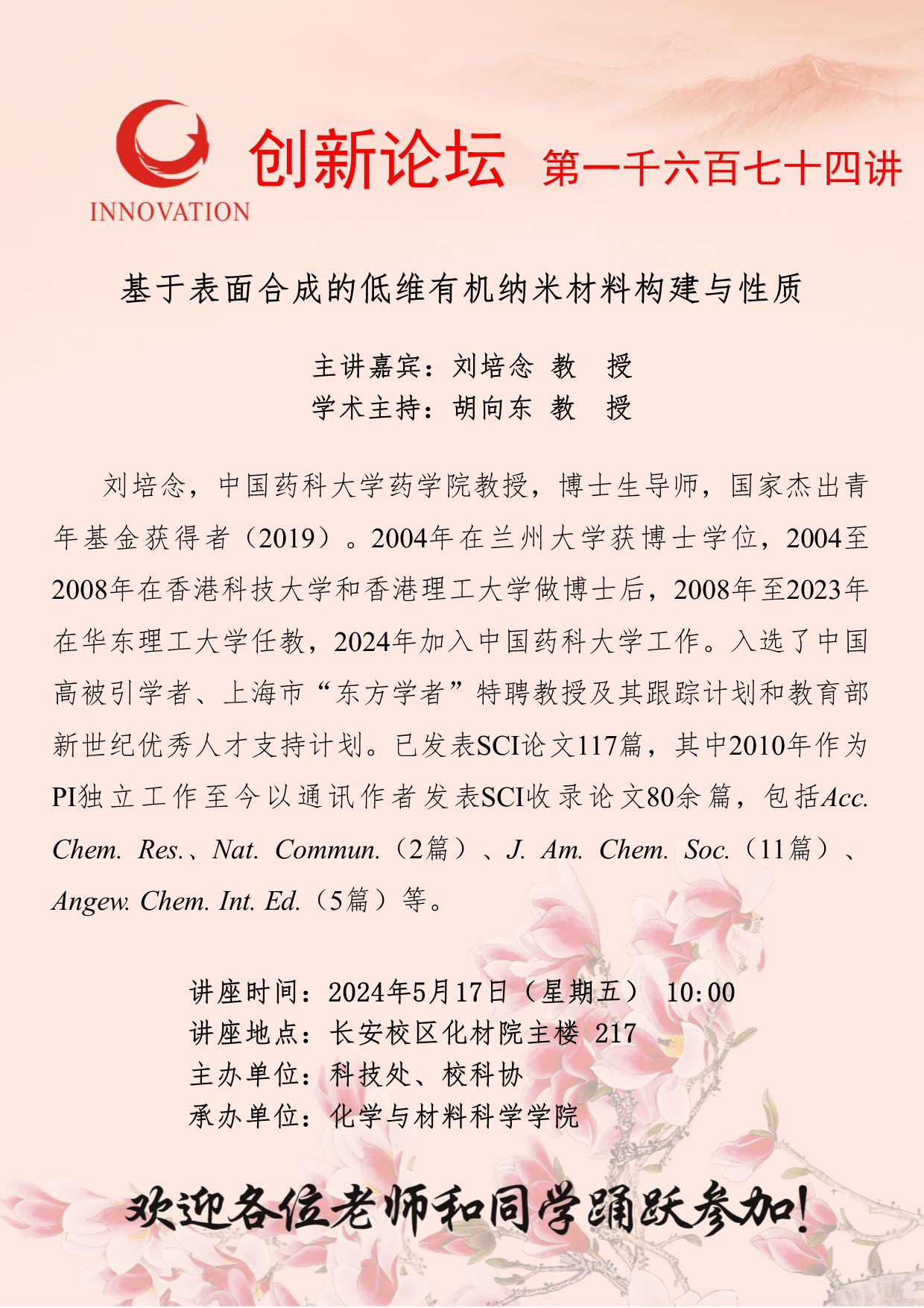 刘培念 教授 乐投平台创新论坛第一千六百七十四讲:基于表面合成的低维有机纳米材料构建与性质 讲座时间 2024年5月17日(星期五) 10:00 讲座地点 长安校区化材院主楼 217 讲座人介绍 刘培念 教授 讲座内容