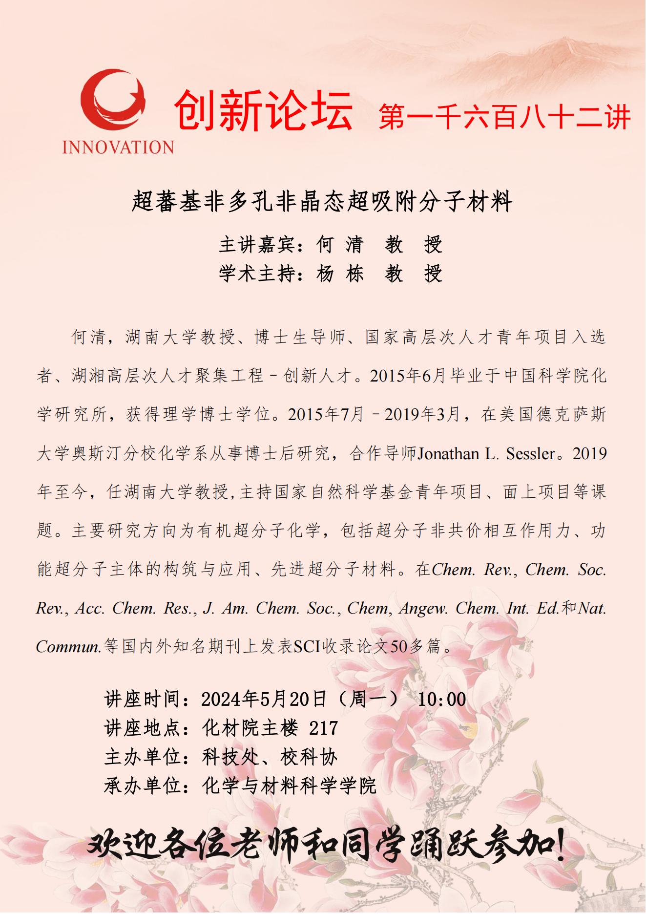 何清 教授 乐投平台创新论坛第一千六百八十二讲:超蕃基非多孔非晶态超吸附分子材料 讲座时间 2024年5月20日(星期一) 10:00 讲座地点 长安校区化材院主楼 217 讲座人介绍 何清 教授 讲座内容