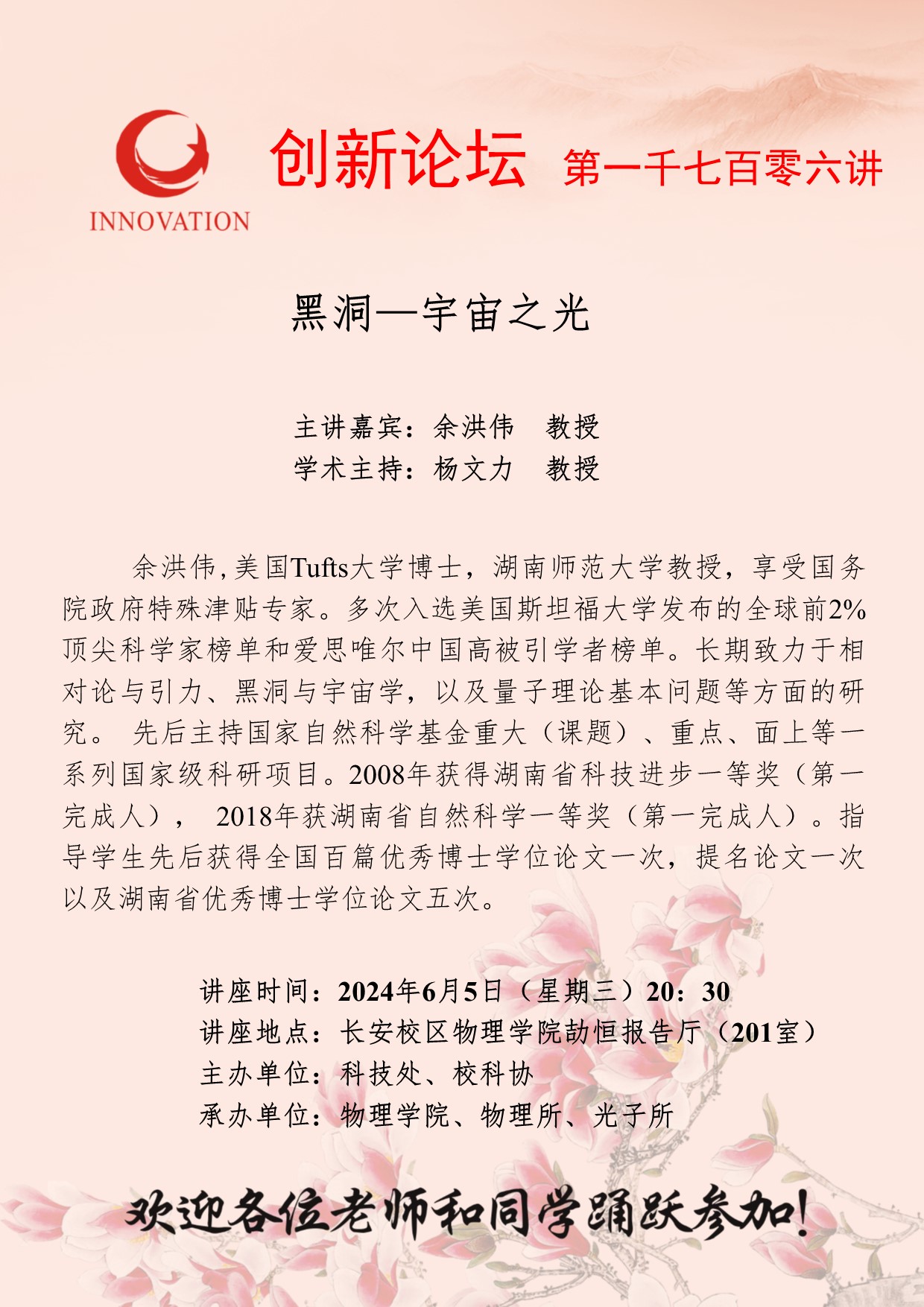 乐投平台创新论坛第一千七百零六讲:黑洞—宇宙之光