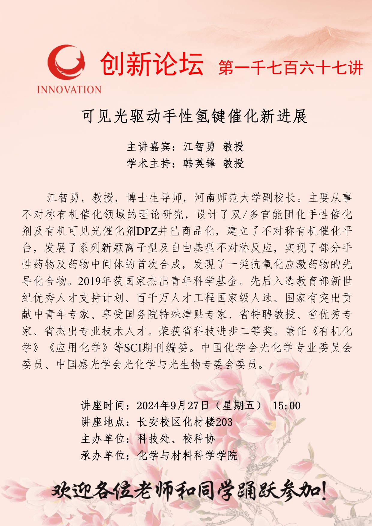 乐投平台创新论坛第一千七百六十七讲:可见光驱动手性氢键催化新进展