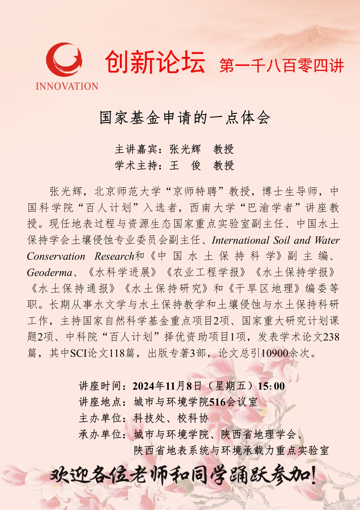 乐投平台创新论坛第一千八百零四讲:国家基金申请的一点体会