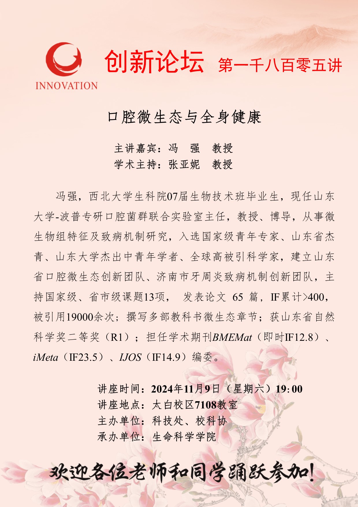 乐投平台创新论坛第一千八百零五讲:口腔微生态与全身健康