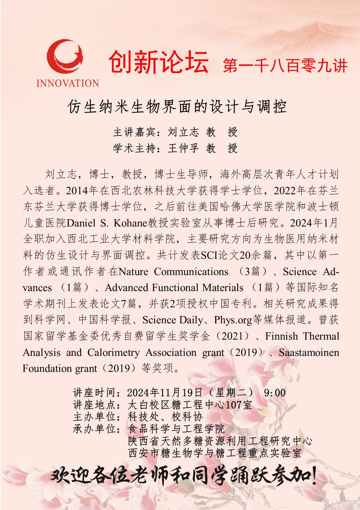 刘立志 教授 乐投平台创新论坛第一千八百零九讲:仿生纳米生物界面的设计与调控 讲座时间 2024年11月19日(星期二) 9:00 讲座地点 太白校区糖工程中心107室 讲座人介绍 刘立志 教授 讲座内容