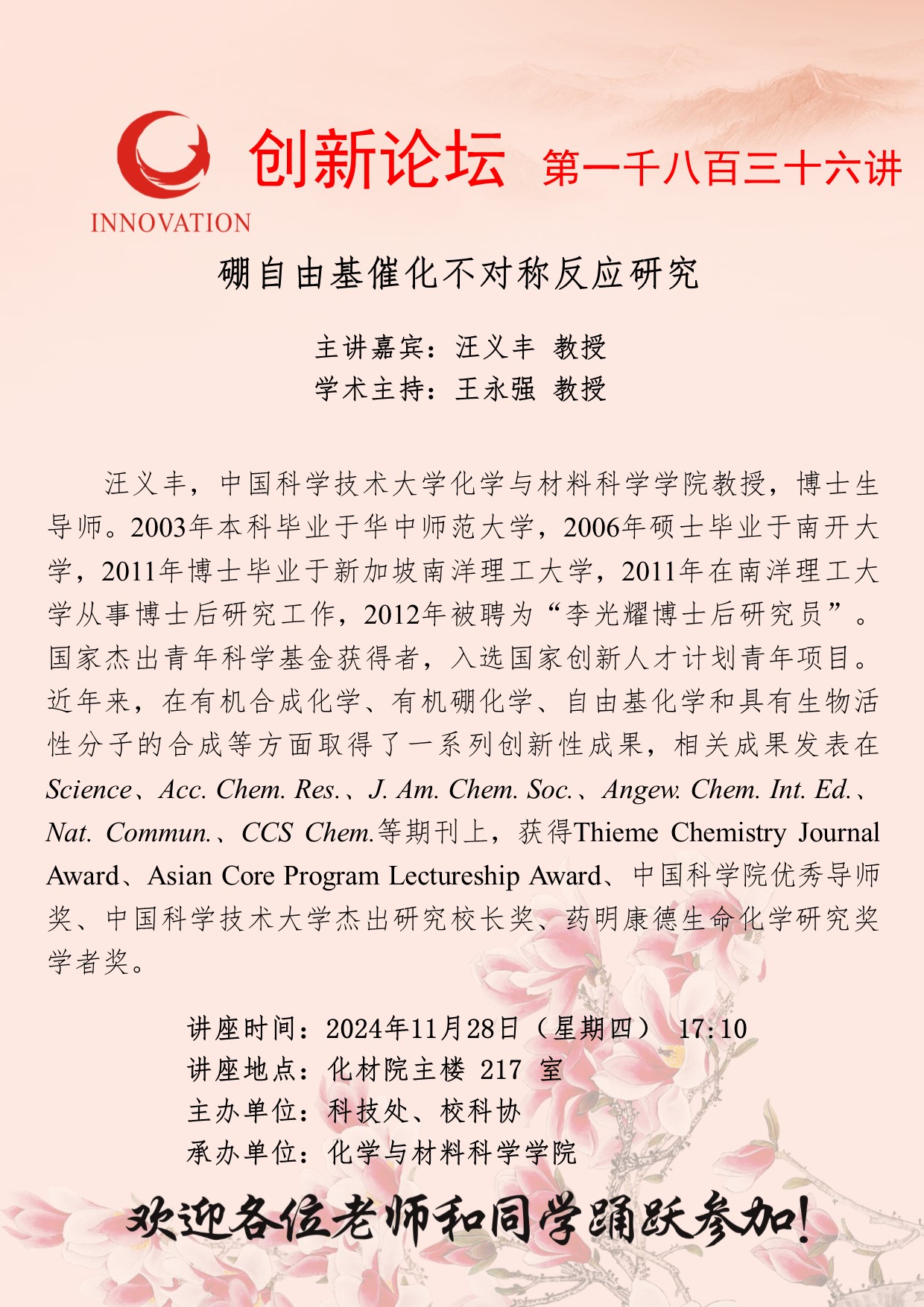 乐投平台创新论坛第一千八百三十五讲:自由基导向的C(sp3)-H官能团化反应
