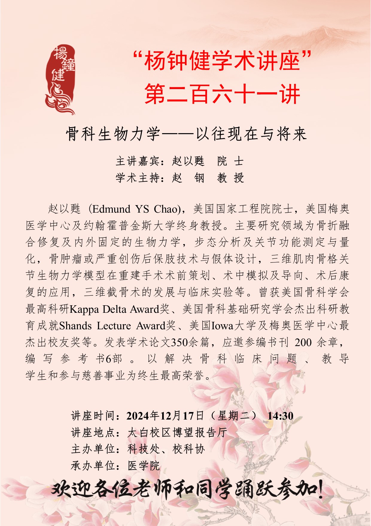 “杨钟健学术讲座”第二百六十一讲:骨科生物力学——以往现在与将来