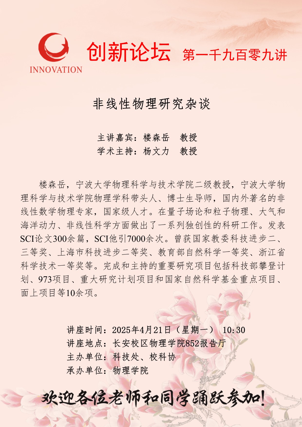 乐投平台创新论坛第一千九百零九讲:非线性物理研究杂谈