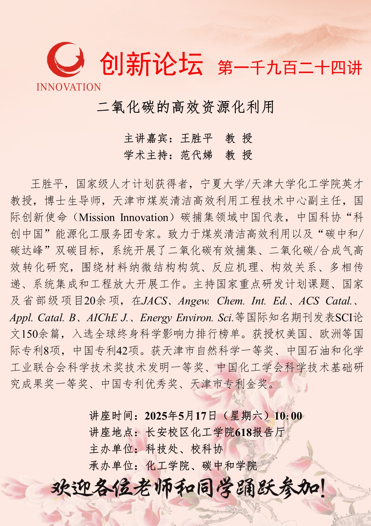 王胜平 教授 乐投平台创新论坛第一千九百二十四讲:二氧化碳的高效资源化利用 讲座时间 2025年5月17日(星期六)10:00 讲座地点 长安校区化工学院618报告厅 讲座人介绍 王胜平 教授 讲座内容