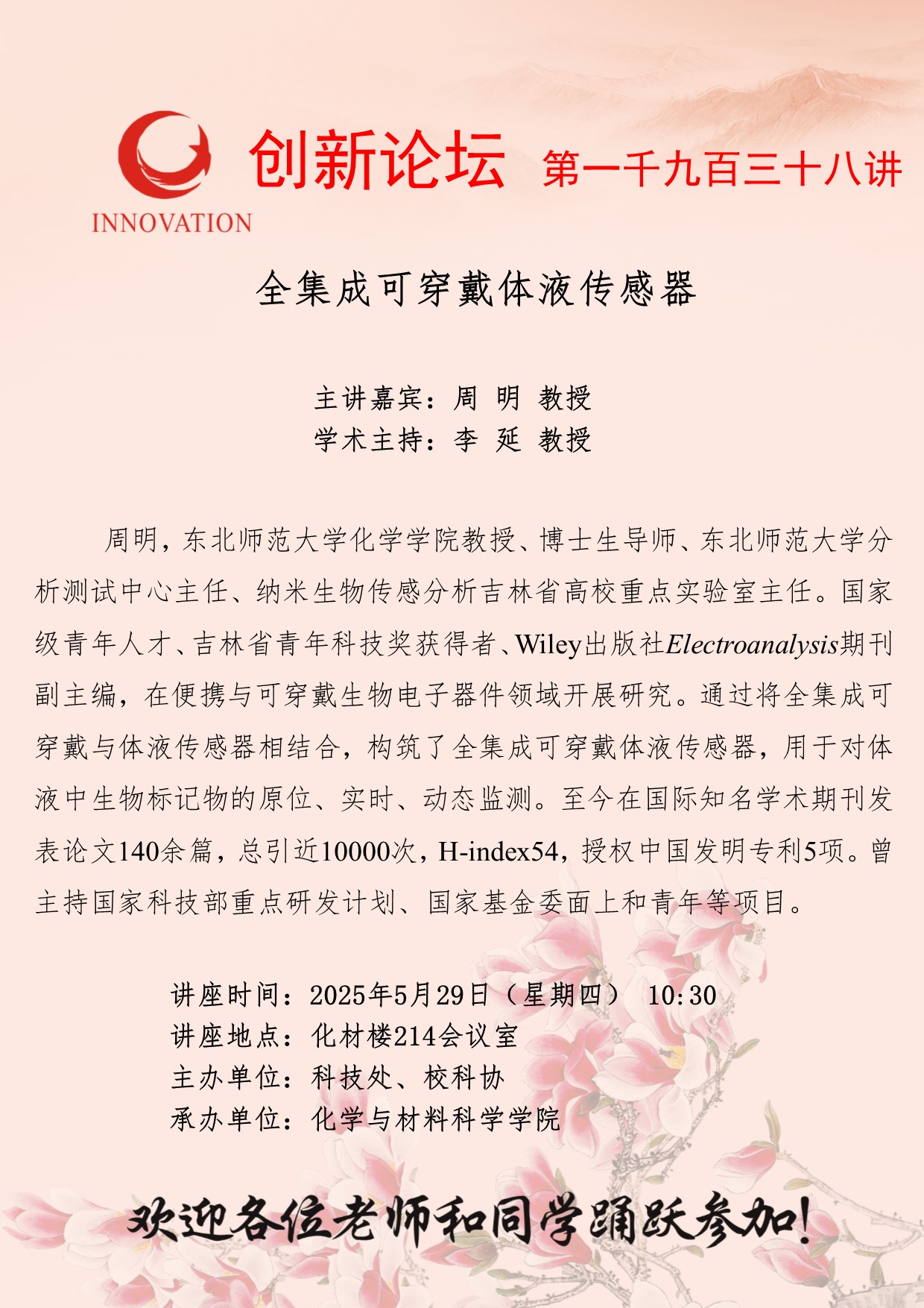 乐投平台创新论坛第一千九百三十八讲:全集成可穿戴体液传感器