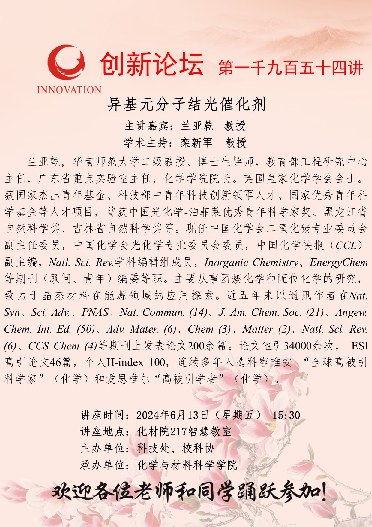 乐投平台创新论坛第一千九百五十四讲:异基元分子结光催化剂