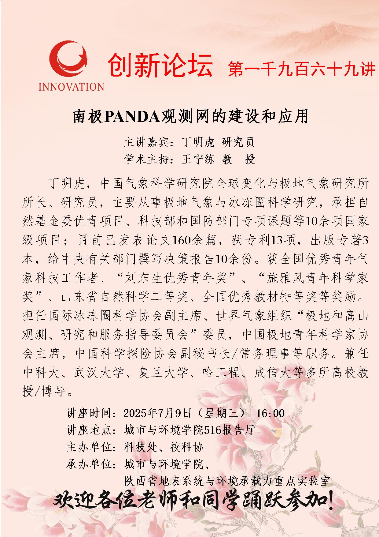 丁明虎 研究员 乐投平台创新论坛第一千九百六十九讲:南极PANDA观测网的建设和应用 讲座时间 2025年7月9日(星期三) 16:00 讲座地点 城市与环境学院516报告厅 讲座人介绍 丁明虎 研究员 讲座内容