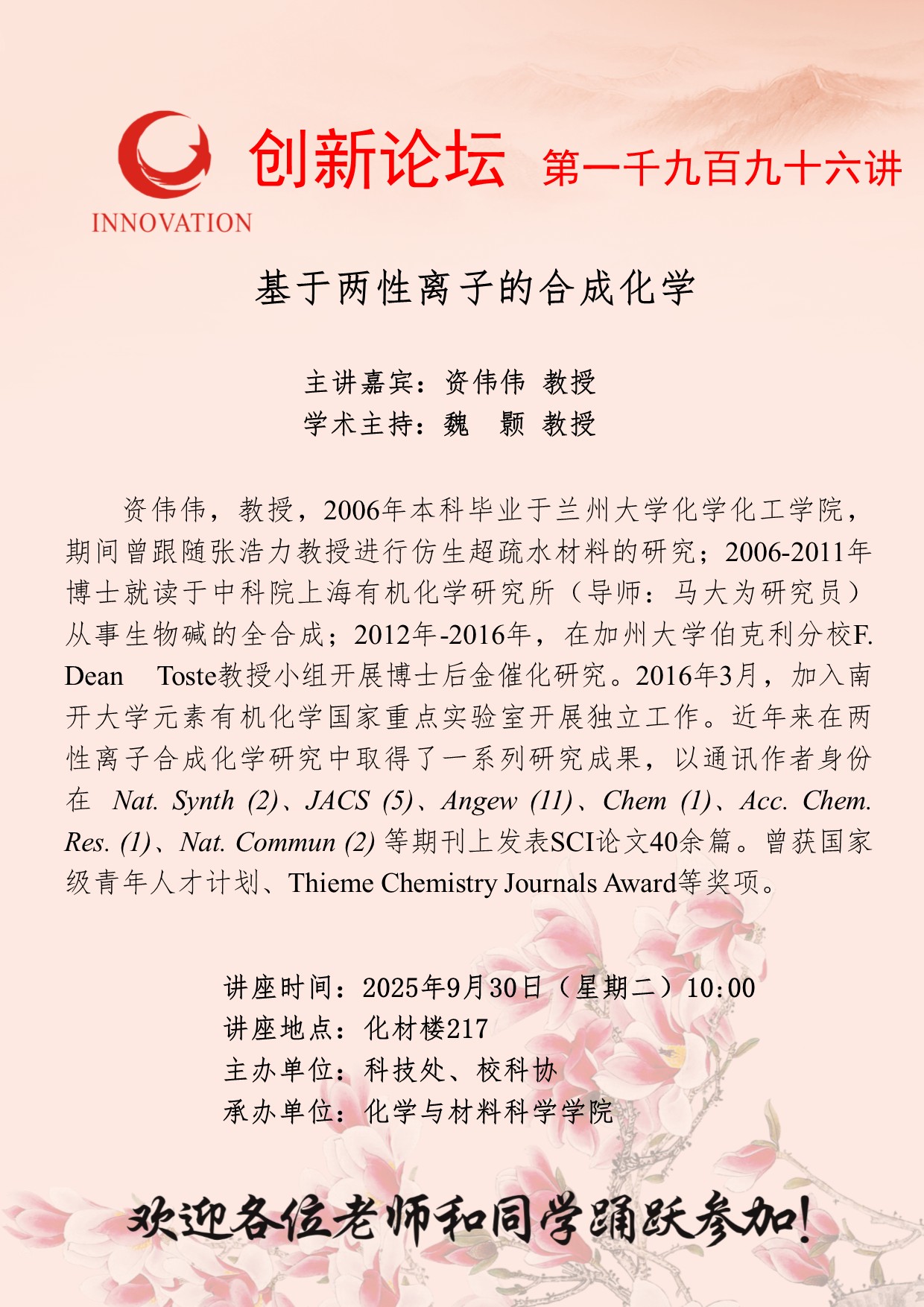 乐投平台创新论坛第一千九百九十六讲: 基于两性离子的合成化学