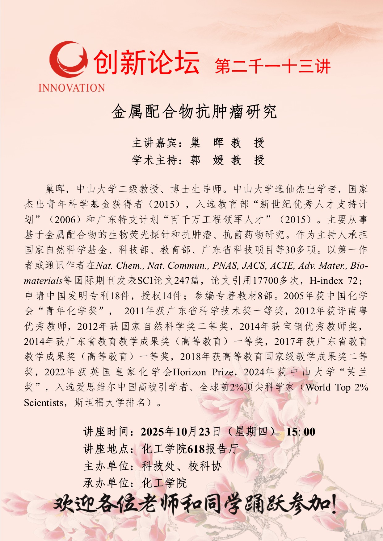 乐投平台创新论坛第二千一十三讲:金属配合物抗肿瘤研究