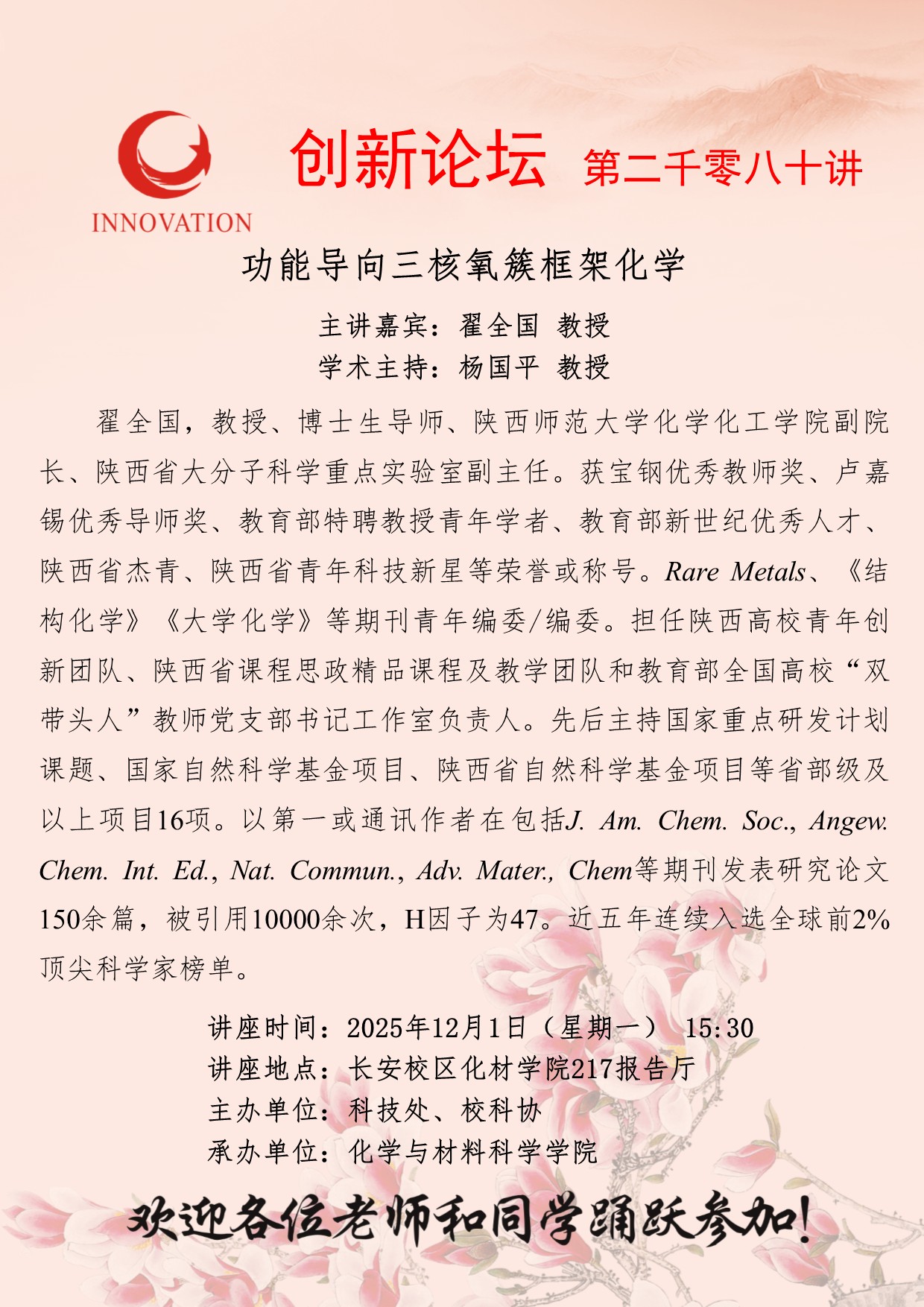 乐投平台创新论坛第二千零八十讲:功能导向三核氧簇框架化学