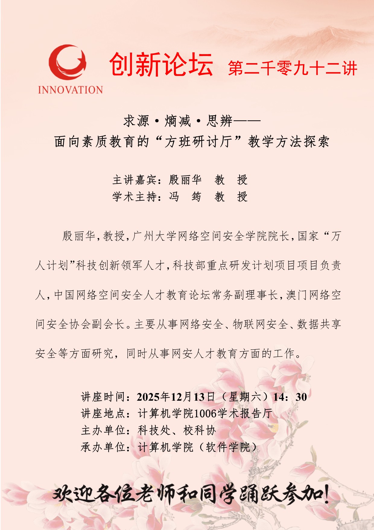 殷丽华 教授 乐投平台创新论坛第二千零九十二讲:求源·熵减·思辨——面向素质教育的“方班研讨厅”教学方法探索 讲座时间 2025年12月13日(星期六)14:30 讲座地点 计算机学院1006学术报告厅 讲座人介绍 殷丽华 教授 讲座内容