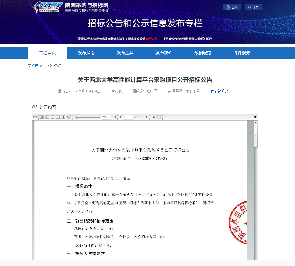 乐投平台高性能计算平台采购项目公开招标公告 作者: 编辑:薛利娟 时间:2020-05-20 原公告链接:http://bulletin.sntba.com/biddingBulletin/2020-05-19/185091.html
