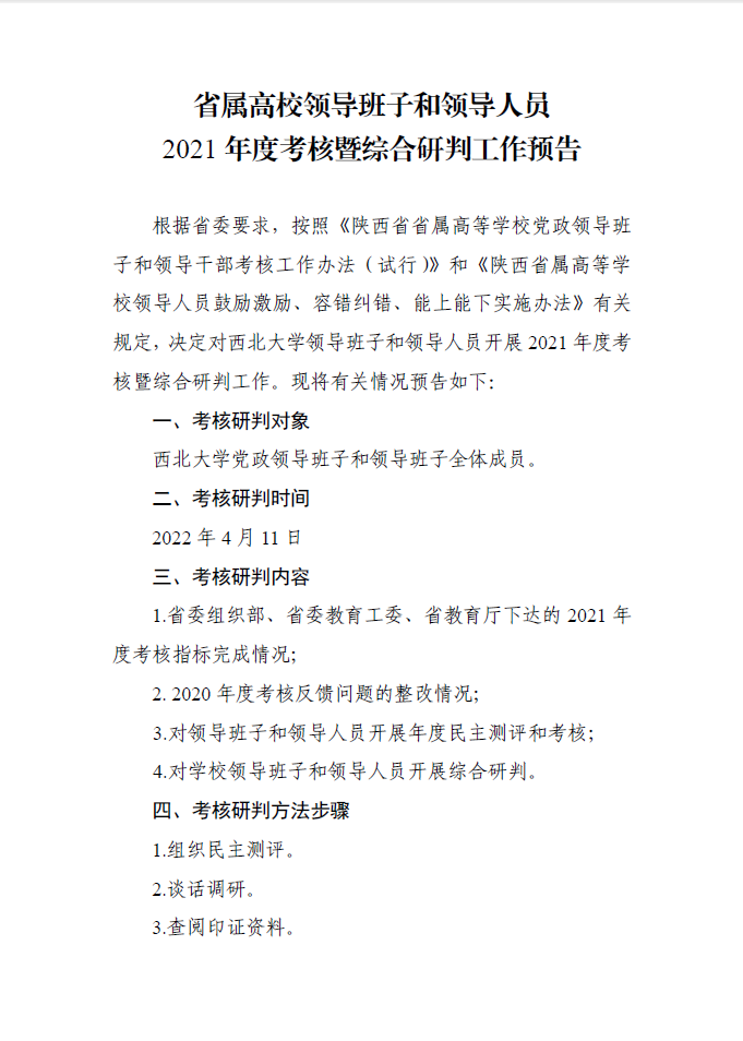 省属高校领导班子和领导人员2021年度考核暨综合研判工作预告