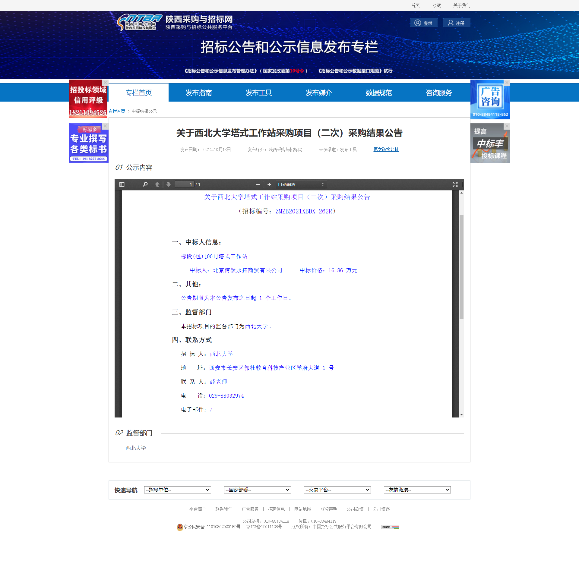关于乐投平台塔式工作站采购项目(二次)采购结果公告 作者: 编辑:采购与招标办公室 时间:2021-10-18 原公告地址:http://bulletin.sntba.com/resultBulletin/2021-10-18/353926.html