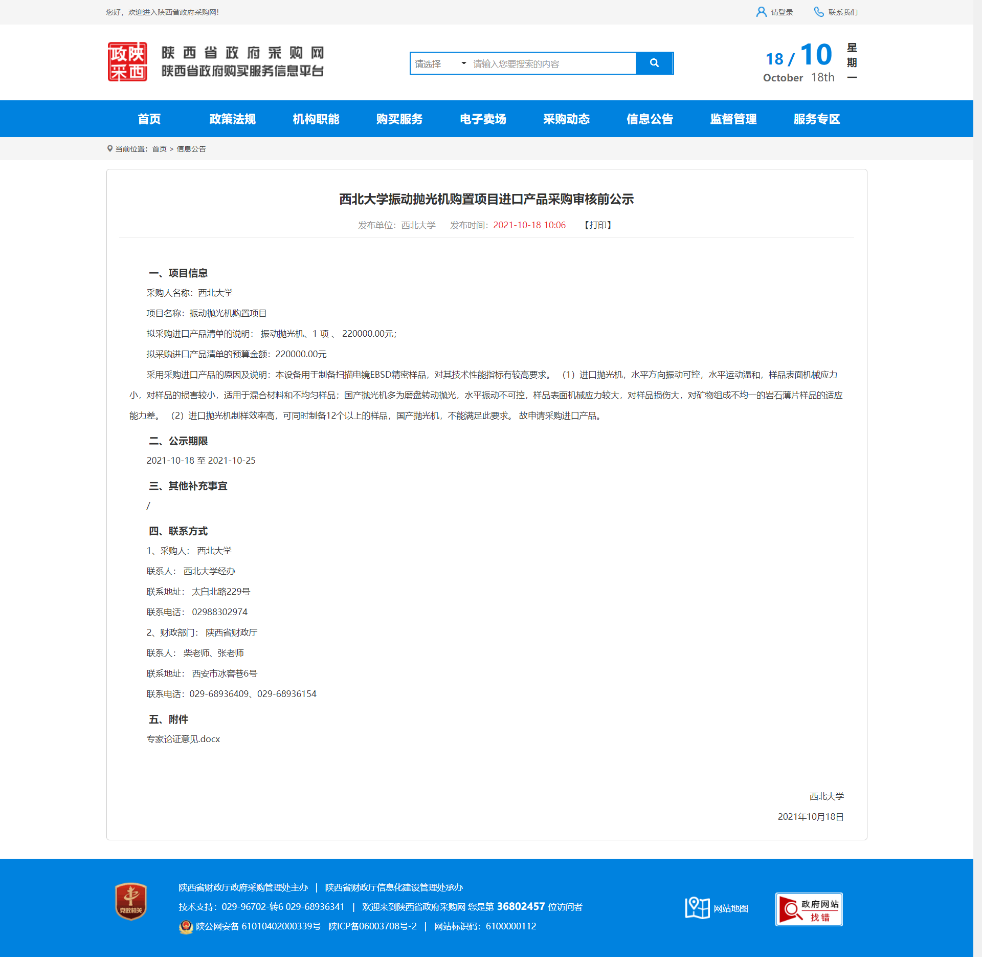 乐投平台振动抛光机购置项目进口产品采购审核前公示 作者: 编辑:采购与招标办公室 时间:2021-10-18 原公告地址:http://www.ccgp-shaanxi.gov.cn/notice/noticeDetail.do?noticeguid=8a85be317c20d707017c912323fc2b89