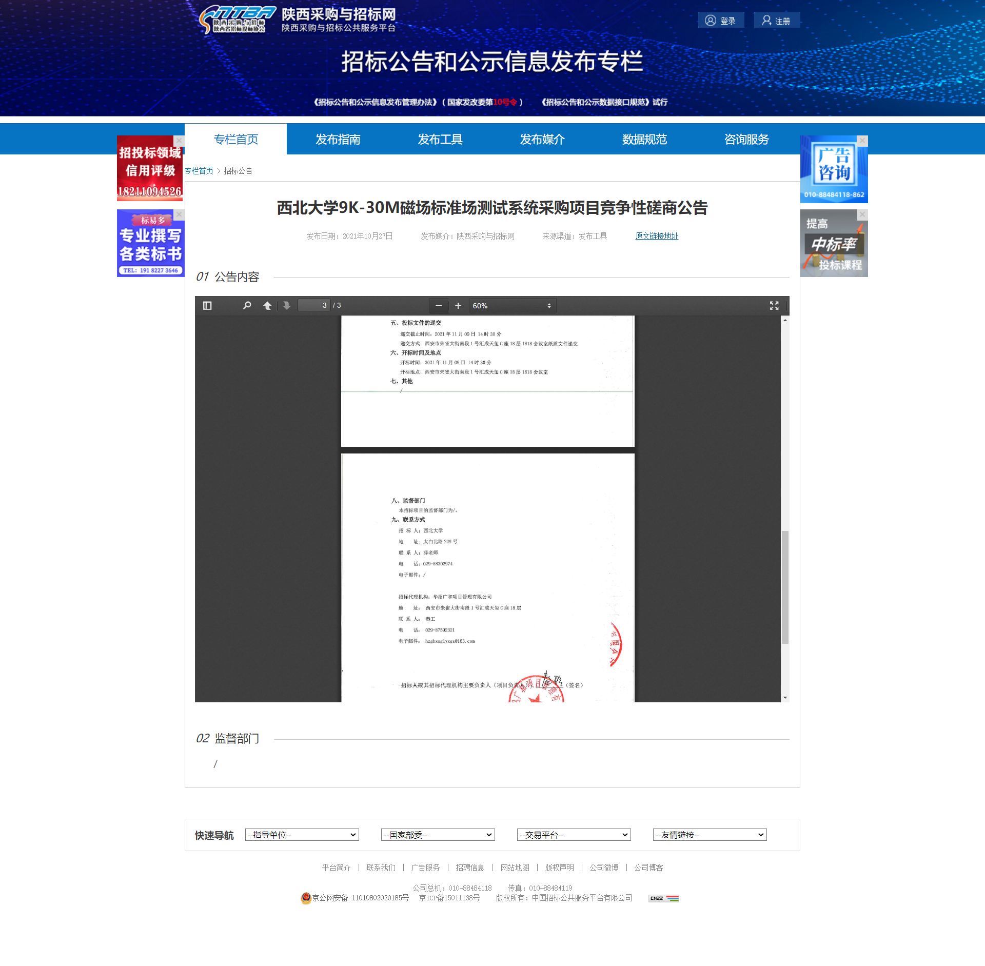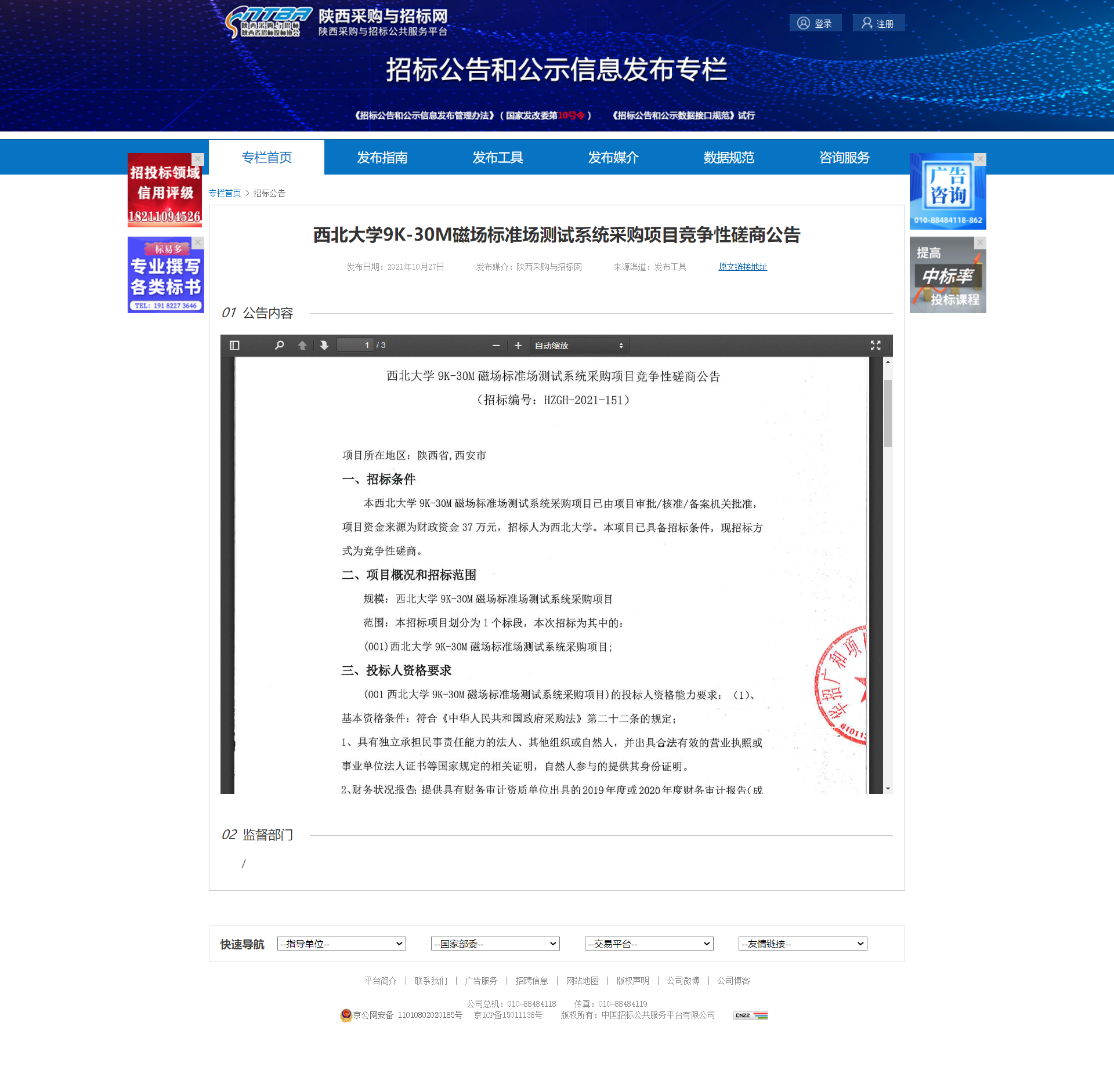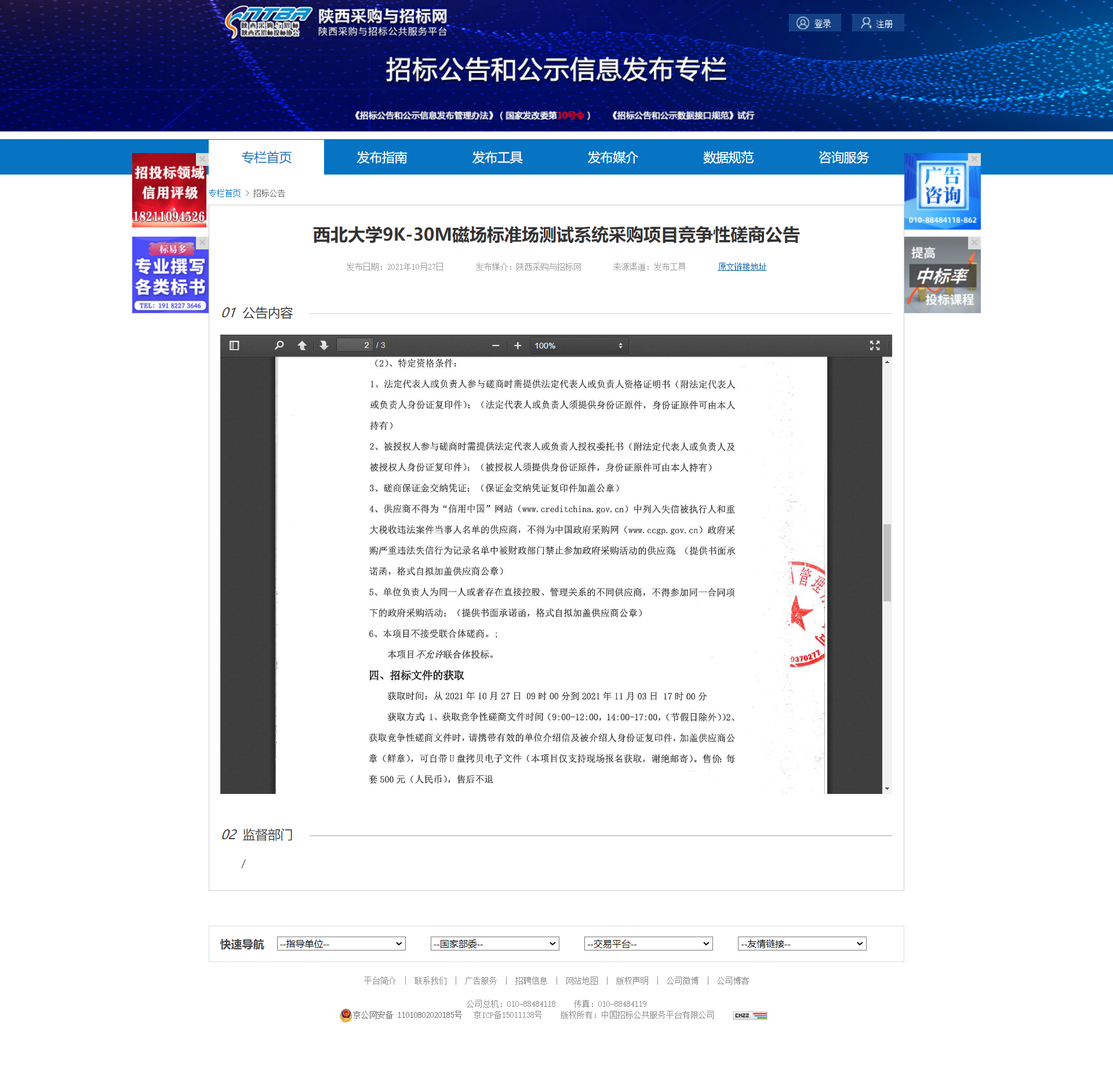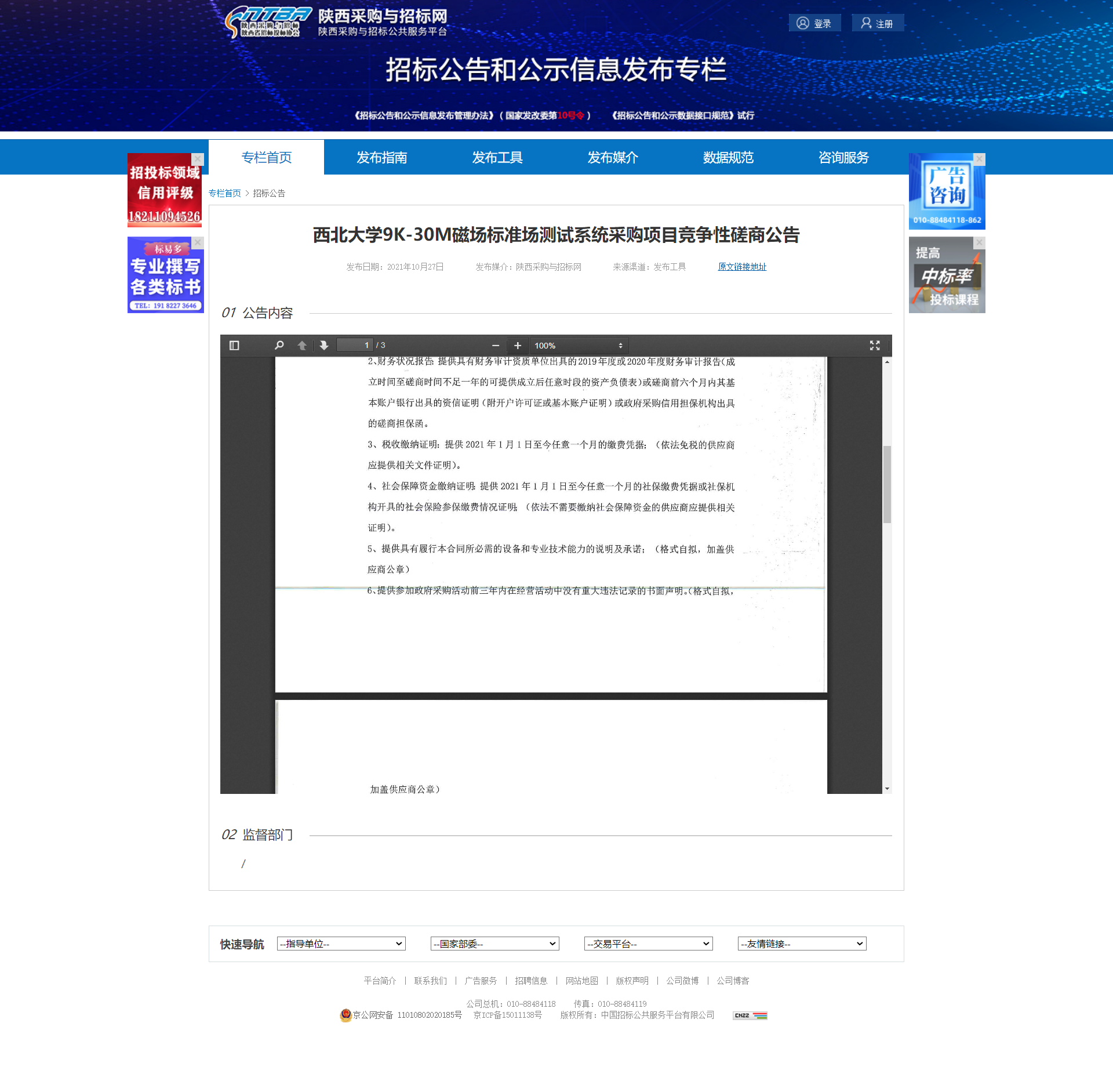 乐投平台9K-30M磁场标准场测试系统采购项目竞争性磋商公告 作者: 编辑:薛利娟 时间:2021-10-27 原公告地址:http://bulletin.sntba.com/biddingBulletin/2021-10-27/357751.html