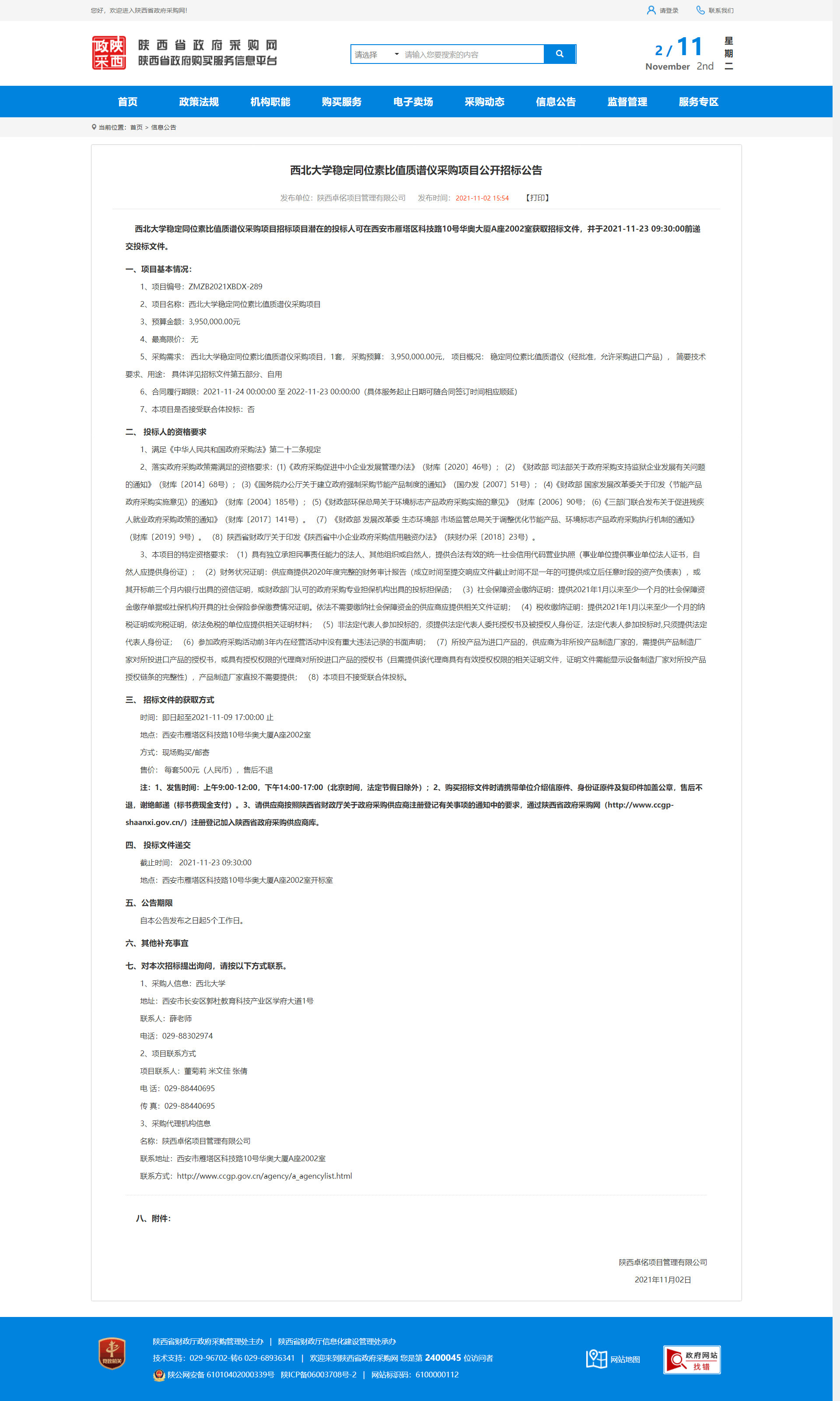 乐投平台稳定同位素比值质谱仪采购项目公开招标公告 作者: 编辑:薛利娟 时间:2021-11-02 原公告地址:http://www.ccgp-shaanxi.gov.cn/notice/noticeDetail.do?noticeguid=8a85be317cc6a275017cdf3b94af7789