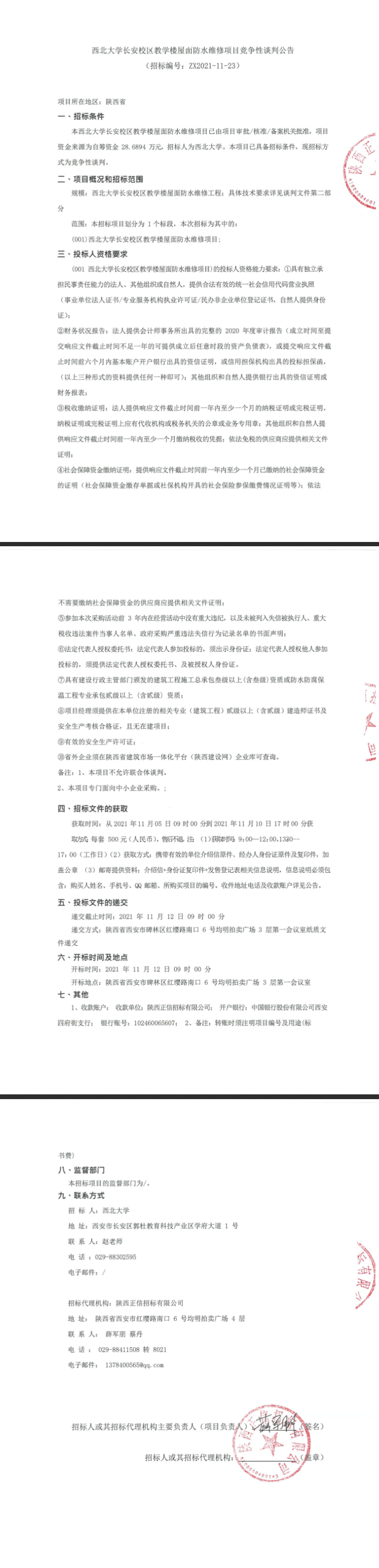 乐投平台长安校区教学楼屋面防水维修项目竞争性谈判公告